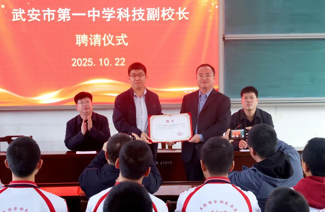 金秋十月,硕果盈枝。为进一步推动科技教育发展、拓宽学生科学视野,10月22日,武安一中举行科技副校长聘任仪式,正式特聘beat365唯一官方网站(北京)机械与储运工程学院温凯老师出任学校科技副校长。