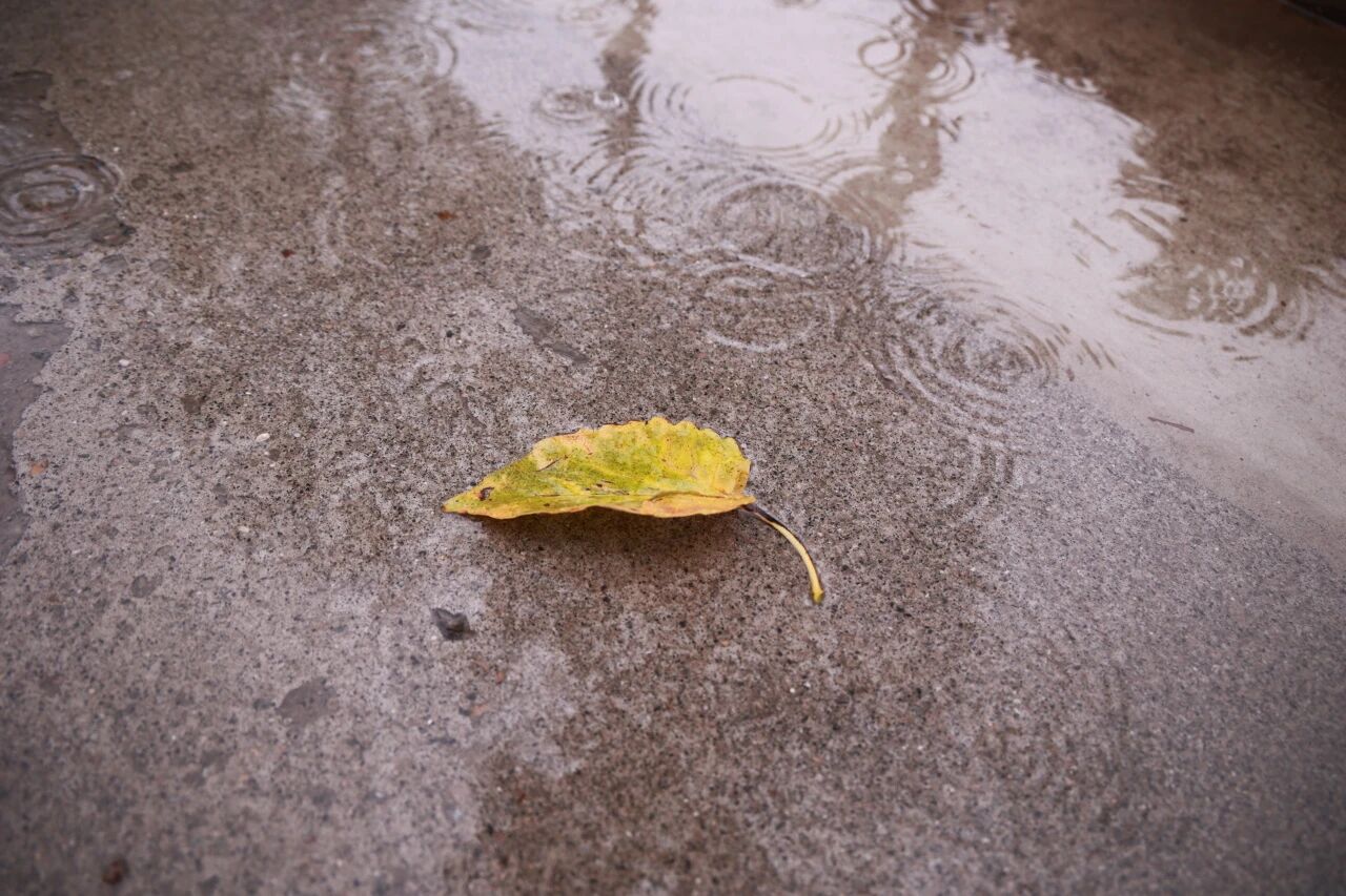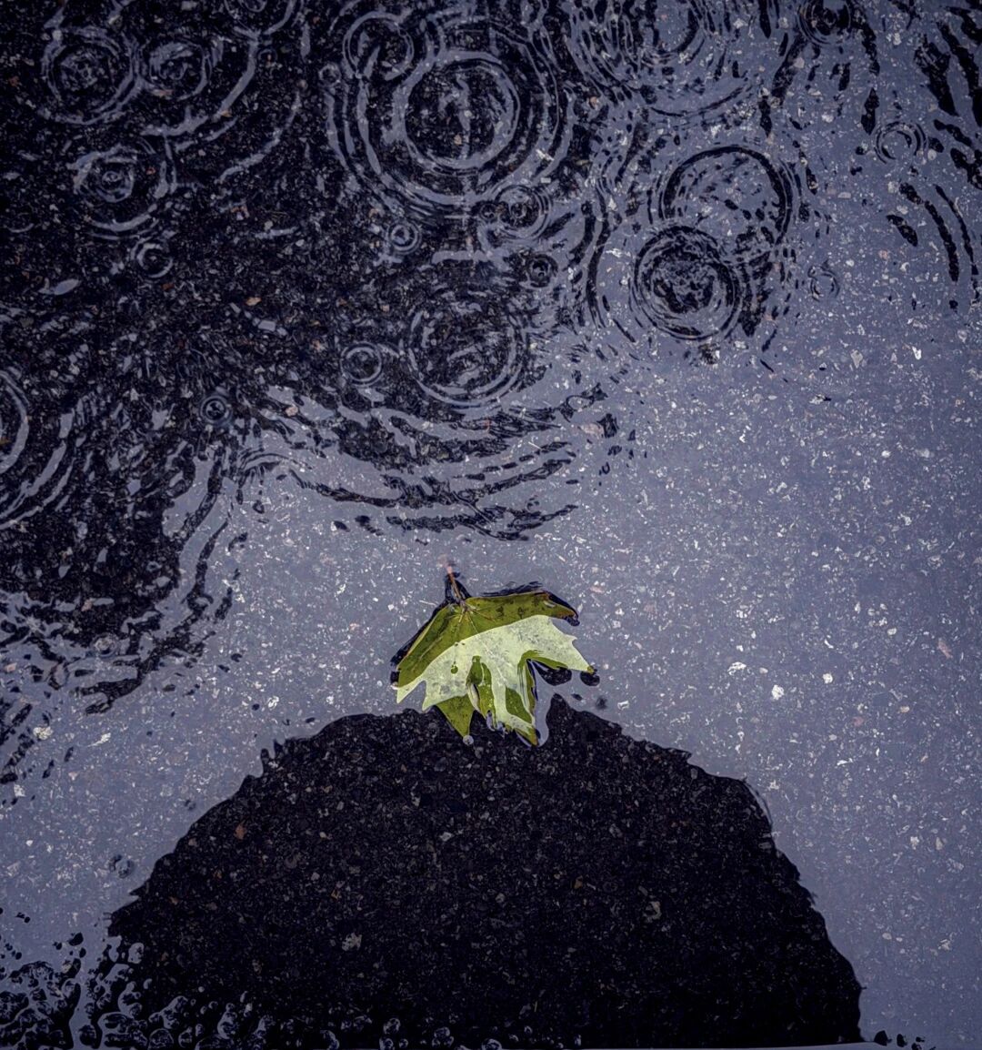 落叶是秋天坠落的音符,涟漪是雨滴弹奏的波纹,它们在水洼相遇,共谱一曲静谧的协奏。
