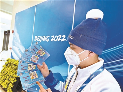 在延庆冬奥村的收费卡服务台,大大小小的明信片和海报让原本的单调工作环境变得充满了色彩。