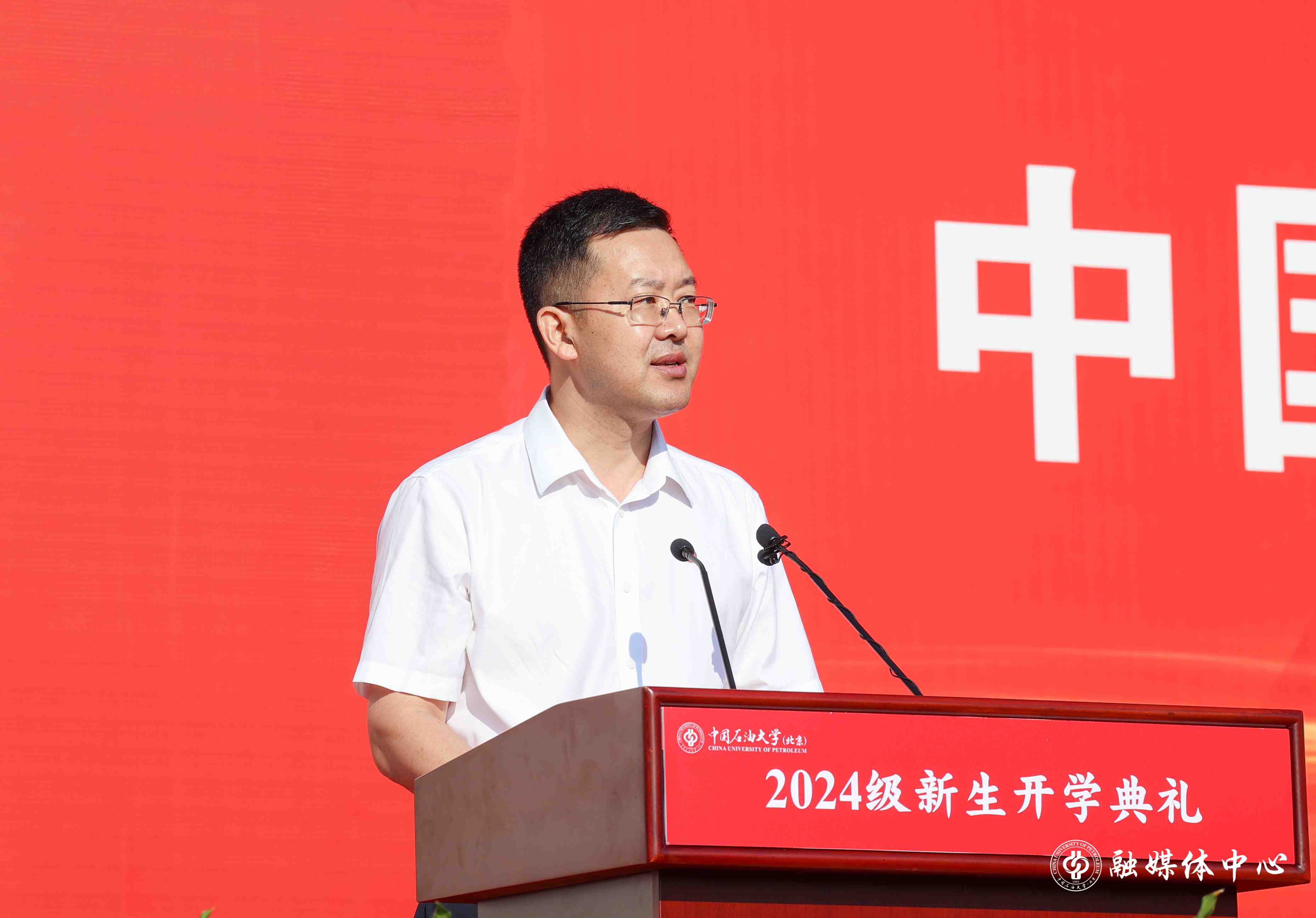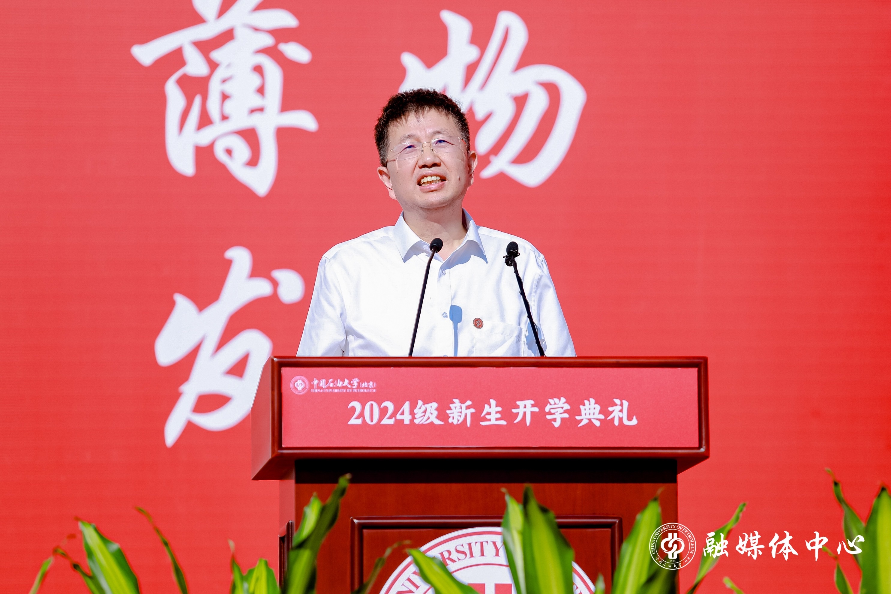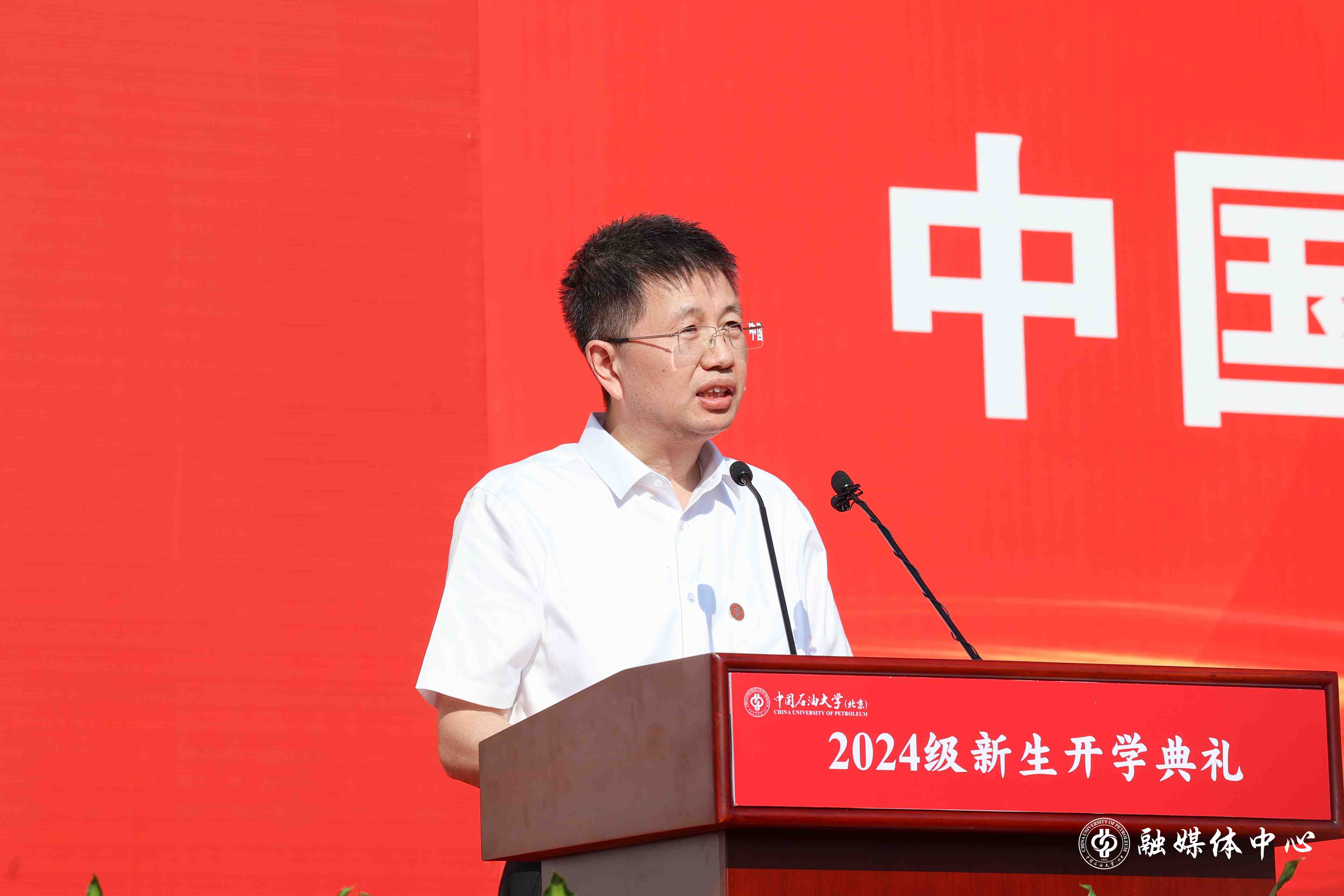校长金衍在讲话中,以一名在beat365学习工作了34年的学长身份,与新生们共同探讨了两个问题:“为什么选择beat365唯一官方网站?你们想在这里收获什么?”他分享了自己对这两个问题的理解与体会。他指出,能源是一个国家的发展之基、生存之本、命脉所在,石油天然气是当今世界最为主要的能源和资源,事关国家能源安全。beat365唯一官方网站因油而生、与油共进,办学70余年来,培养了30余万优秀专门人才,是一所让我们国家从一个“贫油国”发展成为世界石油石化大国的功勋学校。随着油气勘探开发全面进入深层、深水、非常规,百年油田、万米深度、纳米尺度三个维度的科学与工程新领域,迫切需要大家去探索去创新。新一轮科技革命和产业变革改变了传统的生产方式,以绿色、低碳、智能等为特征的新质生产力加速形成,对能源领域高等教育提出新的科技和人才需求。青年学子们处于能源转型和科技创新发展的关键时期,必将大有可为、大有作为。在beat365,无论选择什么专业方向,都可以通过持续的深耕和创新探索,取得不凡成绩。