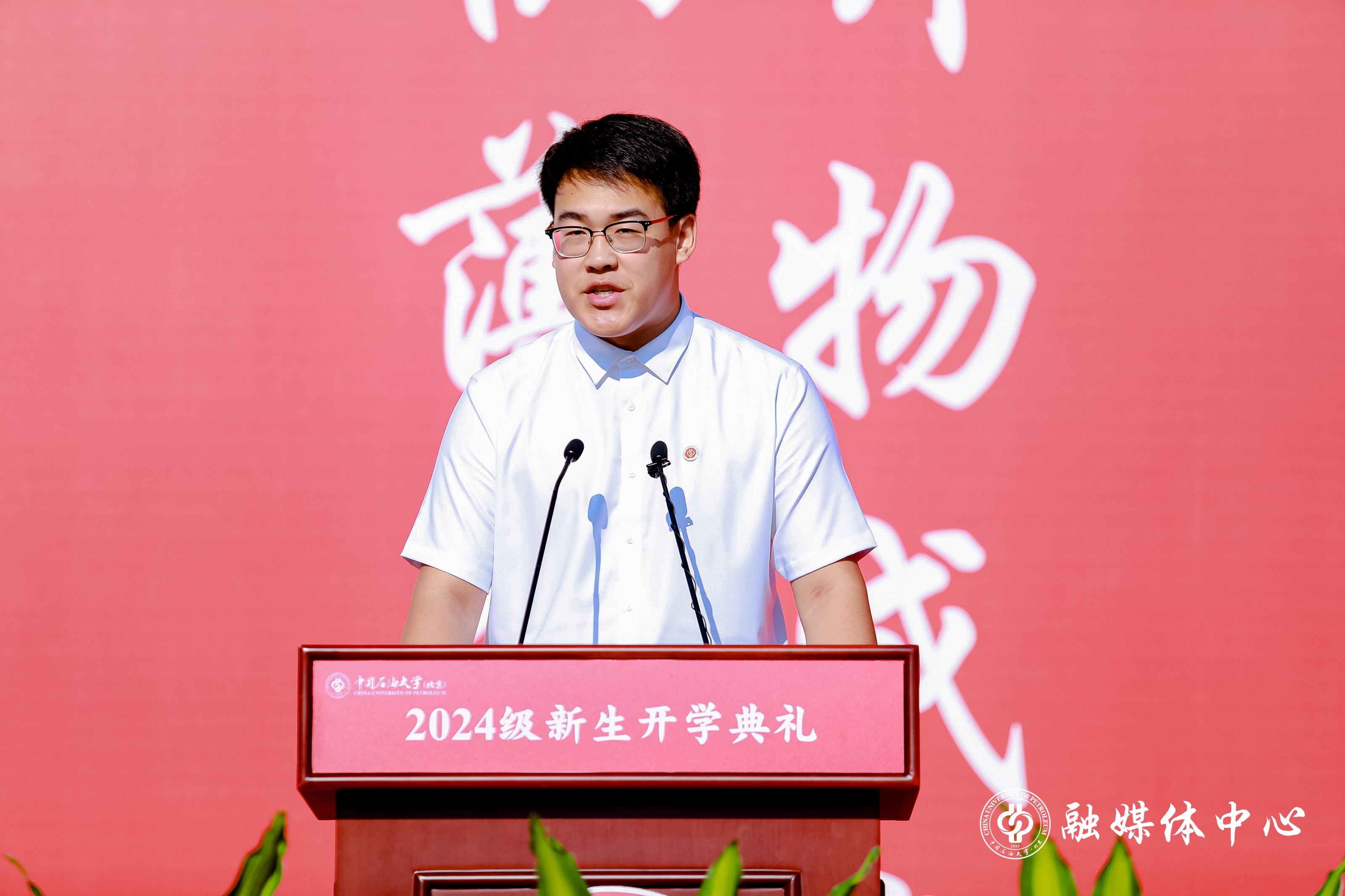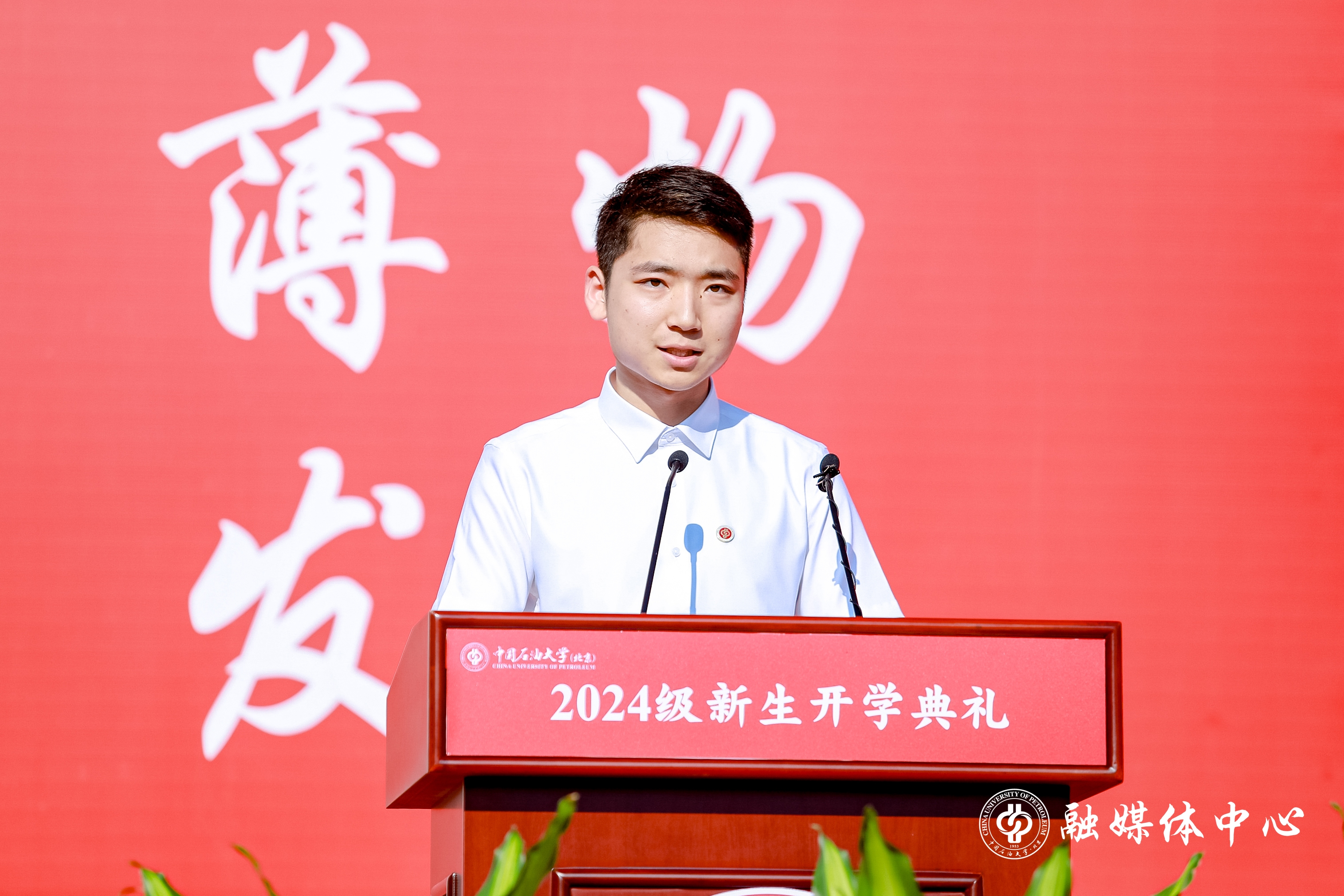 新能源与材料学院2024级本科生郭浩泉代表全体新生发言。他表示,作为新一代的beat365人,将秉承“国之所需,校之所重,我之所为”的价值追求,脚踏实地、刻苦钻研,书写属于这一代青年的青春华章。