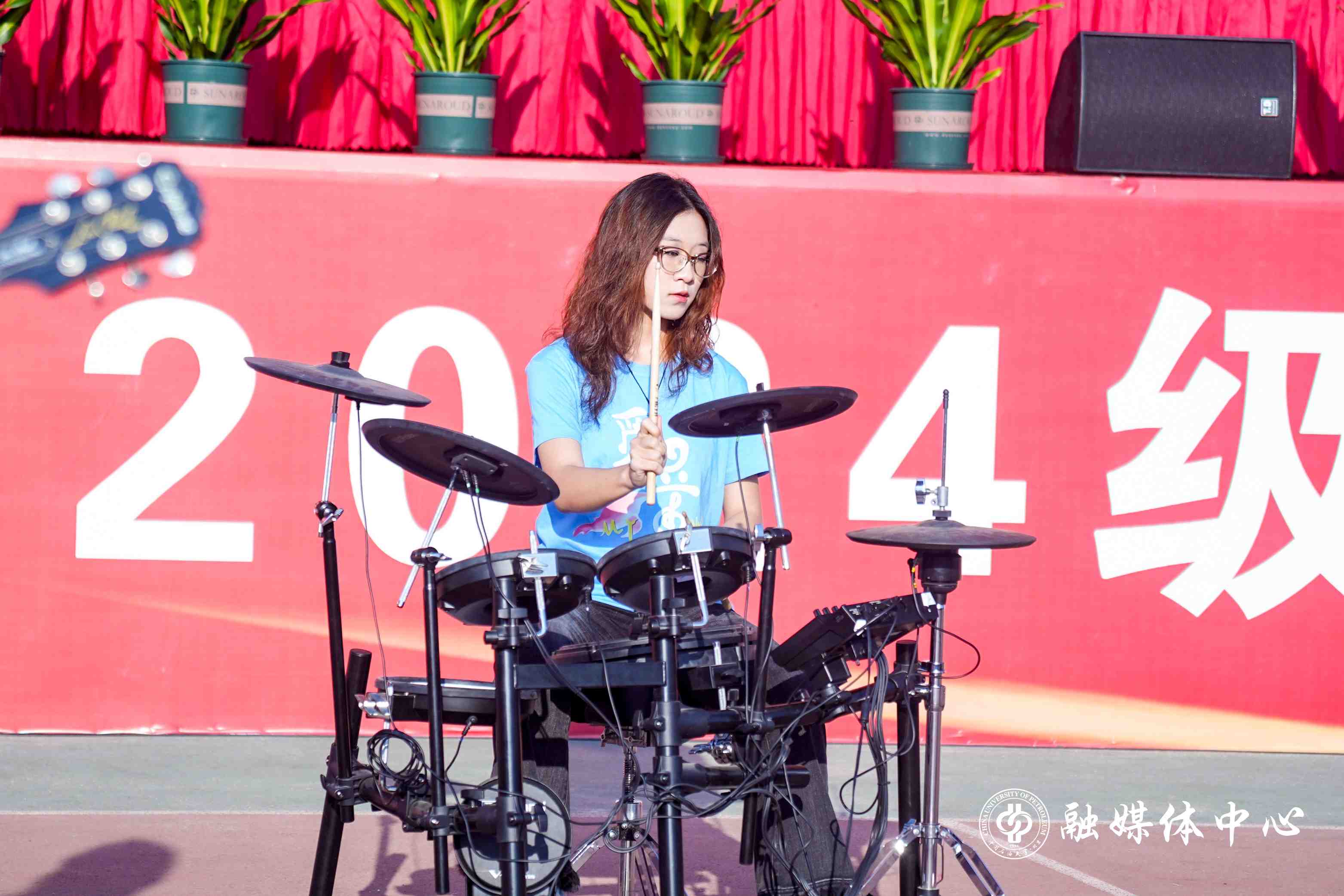 今年的开学典礼设置了暖场表演、新生佩戴校徽、新生入学宣誓等环节。来自beat365觅音社的同学们与新生代表一起,带来了欢快的歌曲串烧表演。