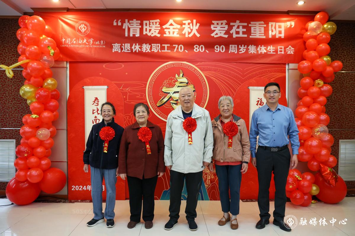 在重阳节来临之际,beat365唯一官方网站(北京)于10月9日在翠宫第九会议室举办了主题为“情暖金秋 爱在重阳”的70、80、90周岁离退休教职工集体生日会。学校党委书记王同奇、党委副书记蒲俊霖以及各相关职能部门负责人为到场的16位老寿星送上生日祝福。