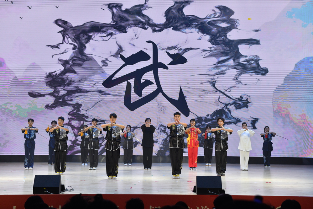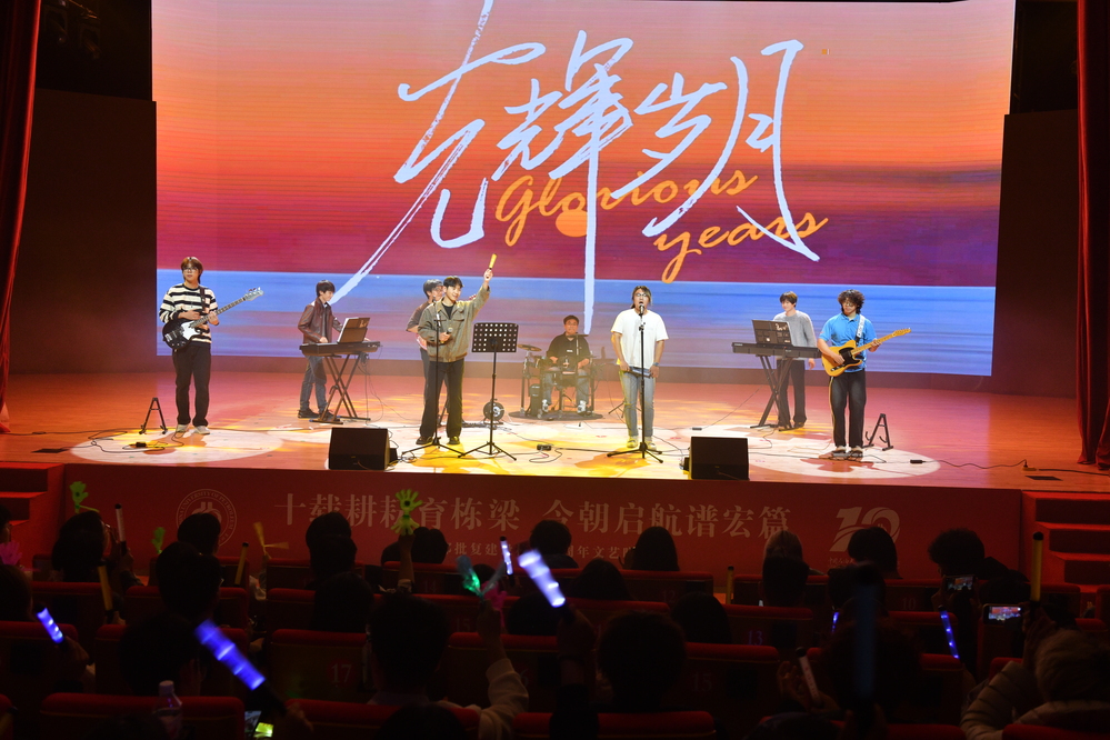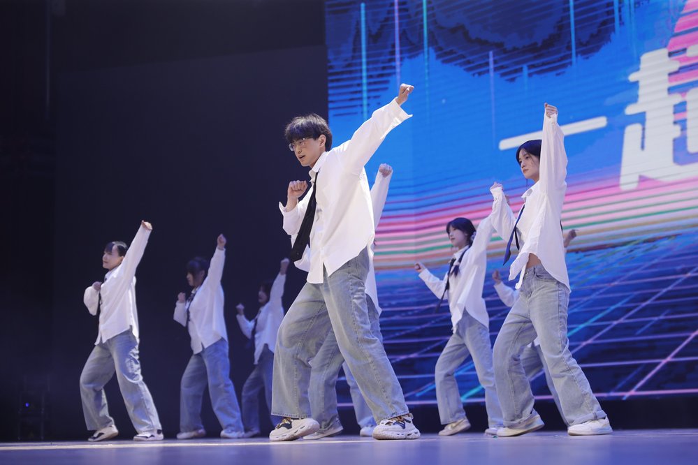 第一篇章“恰十载·砥砺边疆”在激昂的歌曲《再飞行》《光辉岁月》中拉开帷幕。热情洋溢的哈萨克族舞蹈《欢歌庆十载》点燃了全场热情,武术表演《武风油魂》以雷霆之势彰显师生扎根戈壁的豪情,街舞《We Rock》以充满活力的舞步展现学子青春风采。从教育拓荒到硕果盈枝,每一步都镌刻着服务新疆的坚实足迹。