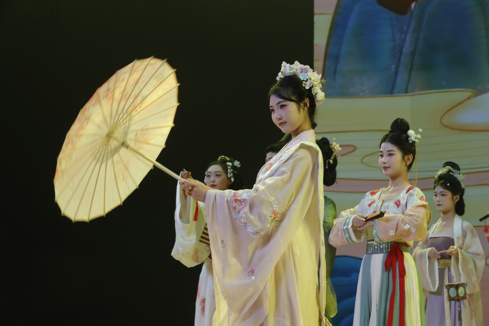 第二篇章“正青春·挺膺担当”,民乐合奏《象王行》以磅礴之音传递家国情怀与责任担当,歌曲《荣光》致敬着每一位奋进的劳动者,舞蹈《淡妆浓抹总相宜》与华服秀《锦绣华裳》展现出艺术与使命的交融之美。台上台下激荡的,是师生间以心育心、以行导行的深厚情谊,更是代代相传的石油精神血脉在新时代的生动回响。