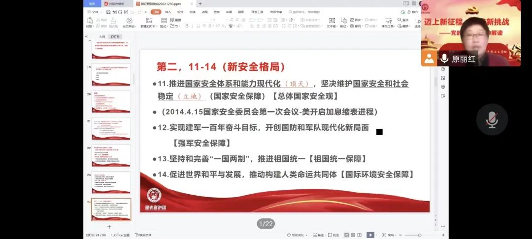 举办宣讲活动深入学。学院各基层党团组织结合实际开展宣讲活动,掀起党的二十大精神学习热潮。学院邀请beat365唯一官方网站(华东)马克思主义学院副教授、中国化马克思主义研究中心副主任原丽红作了题为“迈上新征程,迎接新挑战——党的二十大精神解读”的专题报告,结合重大历史事件,深入剖析了党的二十大报告的关键内容,全面解读了党的二十大会议精神。各党团支部结合支部实际,邀请学校二十大精神宣讲团成员开展精神宣讲,系统梳理党的二十大精神内涵,深化会议精神学习。