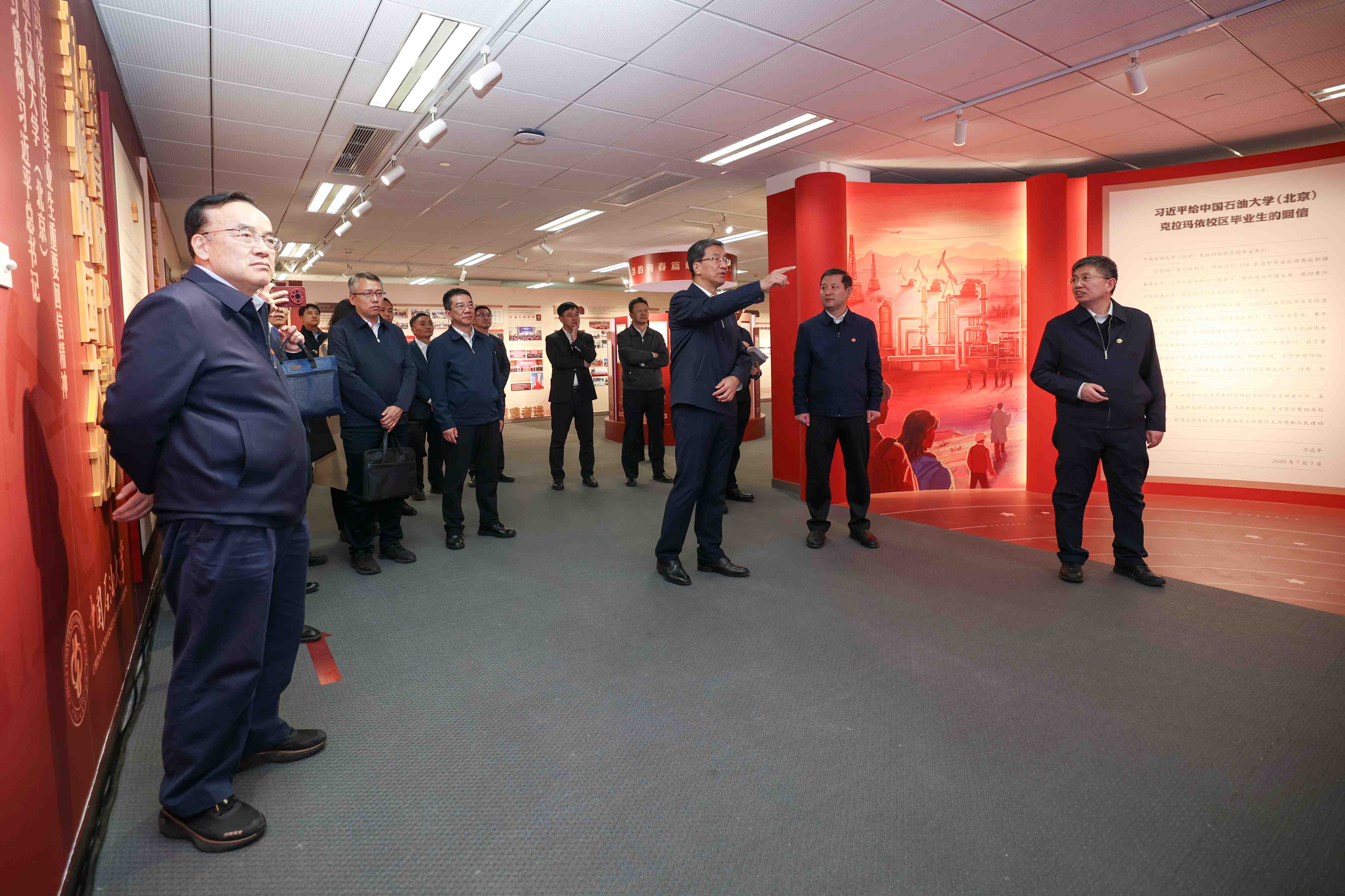 在beat365唯一官方网站(北京),怀进鹏深入国家卓越工程师学院,听取了学院建设情况汇报,详细了解了学院的建设理念、建设任务、学科布局、导师队伍建设、课程与教材建设、校企协同培养和协同攻关、评价和保障体系建设、工程技术中心建设等情况。在油气资源与工程全国重点实验室,怀进鹏听取了实验室推进科技创新、开展科研攻关情况汇报,参观了油气勘探开发上游系列大型实验装置和设备,详细了解了沉积水槽实验平台、石油工程岩石力学实验平台、井孔地球物理测井平台、大型气浮三维地震物理模型实验系统等取得的科研成果和成果转化应用情况。怀进鹏听取了学校实施开放融合战略,落实国家教育对外开放重大部署、服务我国石油工业“走出去”情况以及中巴教育国际交流合作情况汇报,参观了学校“勇担时代使命 矢志能源报国”学习贯彻习近平总书记重要回信精神主题展厅。