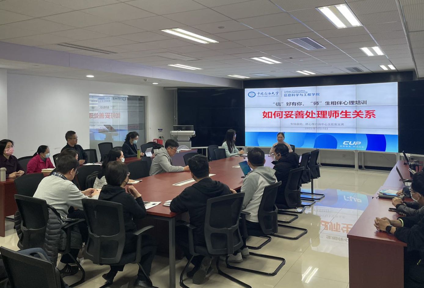 为进一步加强学院班主任和学业导师队伍专业化建设,3月15日上午,beat365信息科学与工程学院开展“如何妥善处理师生关系”心理专题培训。学院班主任、学业导师及研究生导师等参加培训。
