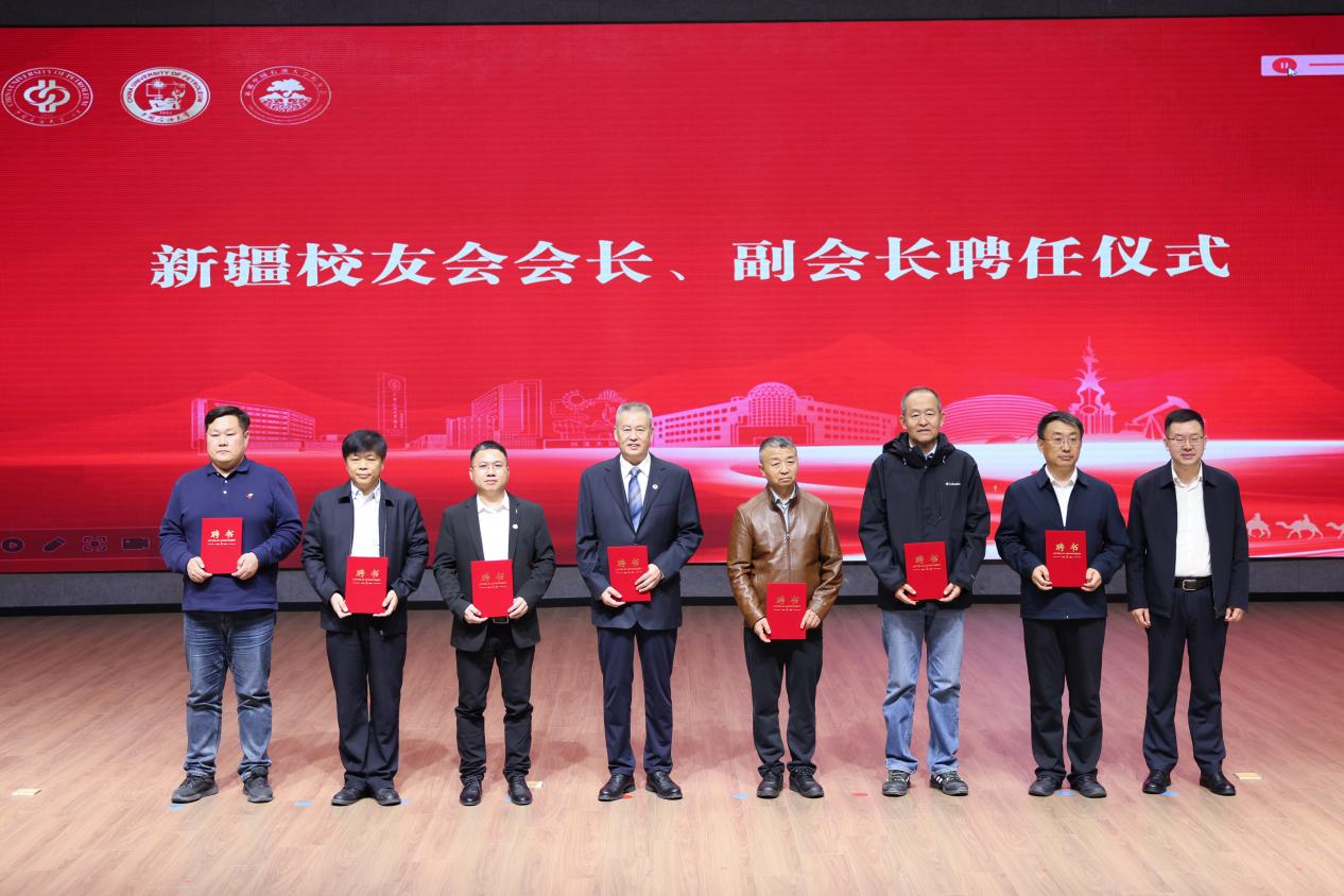 文永红为校友会授牌,为会长陈大恩和副会长杜文强、张理飞、黄国涛、和永亮、郭绪强、徐长亮颁发聘书。上海校友会、甘肃校友会、广西校友会、贵州校友会、湖南校友会、西安校友会、深圳校友会、武汉校友会、天津校友会、四川校友会、云南校友会、合肥校友会等校友组织分别向新疆校友会送来贺信和祝福。