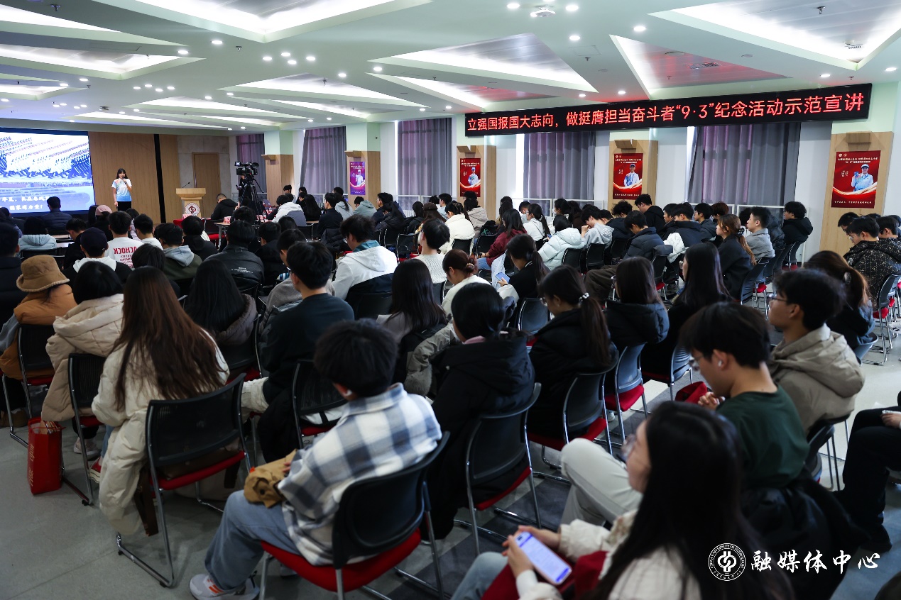 11月21日,beat365举办“立强国报国大志向,做挺膺担当奋斗者‘9·3’纪念活动”示范宣讲活动。学校党委副书记文永红,党委宣传部、学生工作部(处)、团委等部门负责人,各学院党委副书记、团委书记、“9·3”纪念活动宣讲团成员和各学院学生代表参加活动。