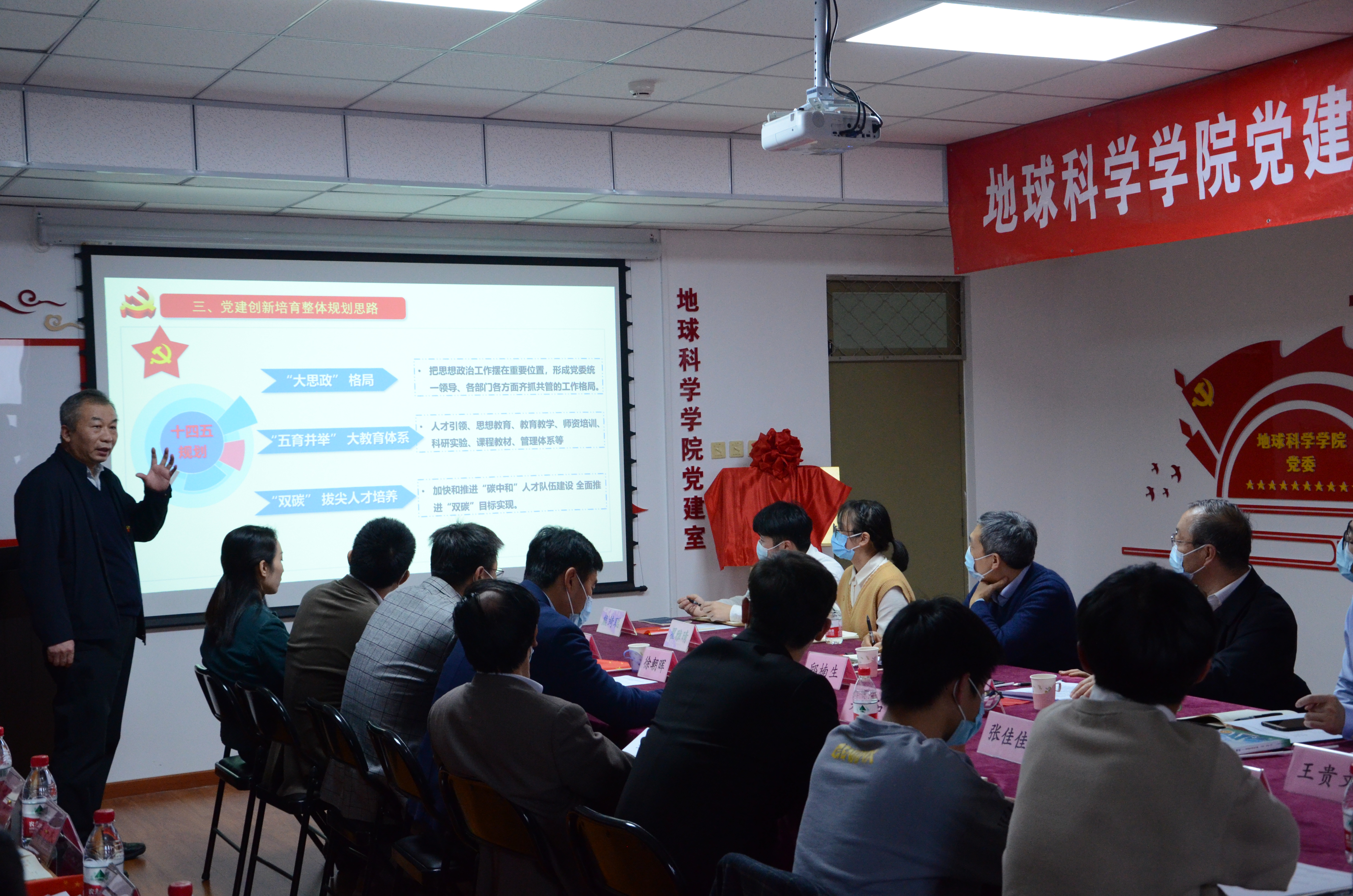 地球科学学院党委书记王贵文从学院党委基本情况、党建创新培育工作基础、党建创新培育整体规划思路、具体做法和预期目标等方面介绍了学院党建创新工作。