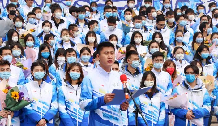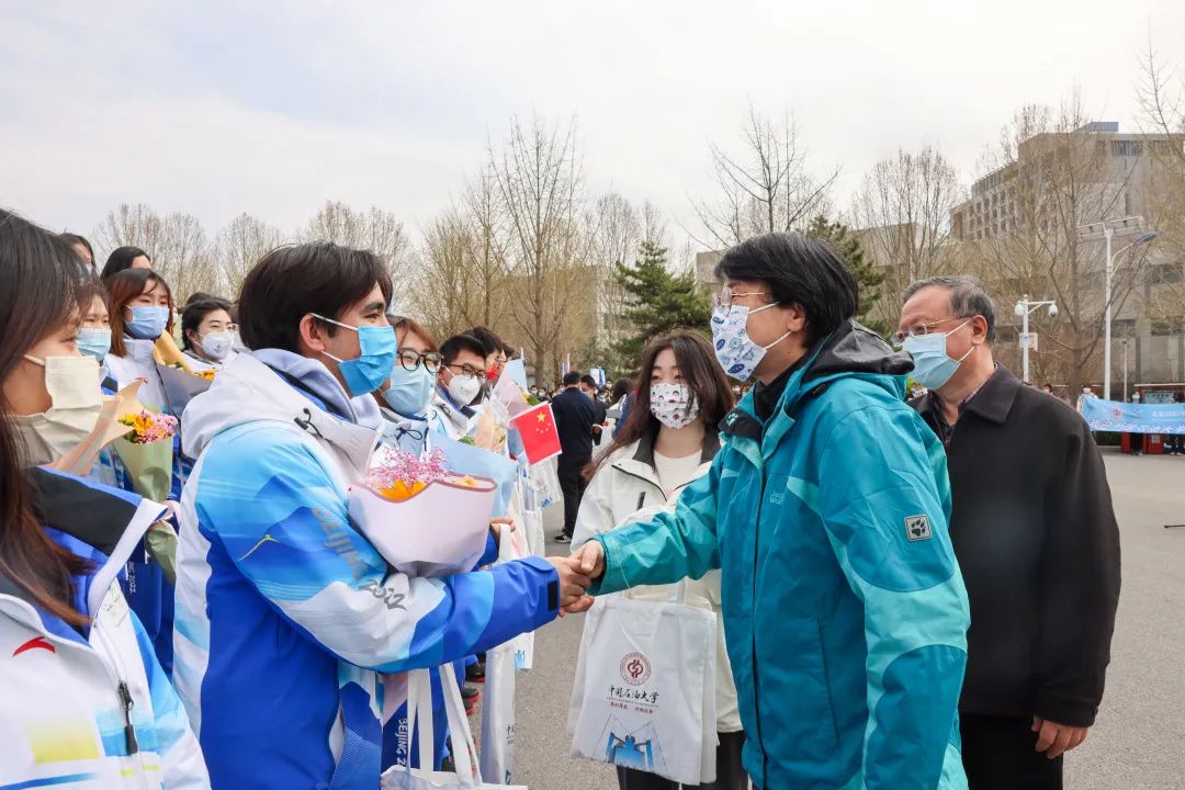 4月6日上午,优美的《雪花》旋律回荡在校园,beat365参加2022北京冬奥会、冬残奥会志愿服务的最后一批志愿者回到阔别已久的学校。校长吴小林、党委副书记雷玉江、党委常委文永红,学校相关职能部门负责人,各学院院长、学生工作及团委负责人,全体beat365冬奥会、冬残奥会志愿者,师生代表等近400人参加欢迎仪式。
