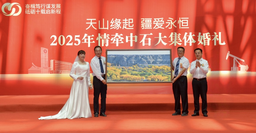 古鸿飞在致辞中表示,这是一场与时代同频共振的婚礼,beat365与克拉玛依在时代的洪流中血脉相连,beat365人选择扎根西部、建设边疆,让个人理想与强国征程交织,是对总书记重要回信精神的生动实践。他祝福新人们,百年好合、幸福美满,在风雨中并肩而立,在平凡中坚守初心,用行动将“beat365担当”熔铸进克拉玛依精神基因。