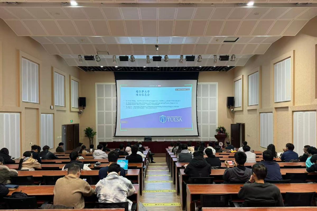 访问期间,塔尔萨大学代表团参观了学校校史馆,与2026级交换生开展座谈交流,并面向全校学生开展了塔尔萨大学学生联培项目专题宣讲。