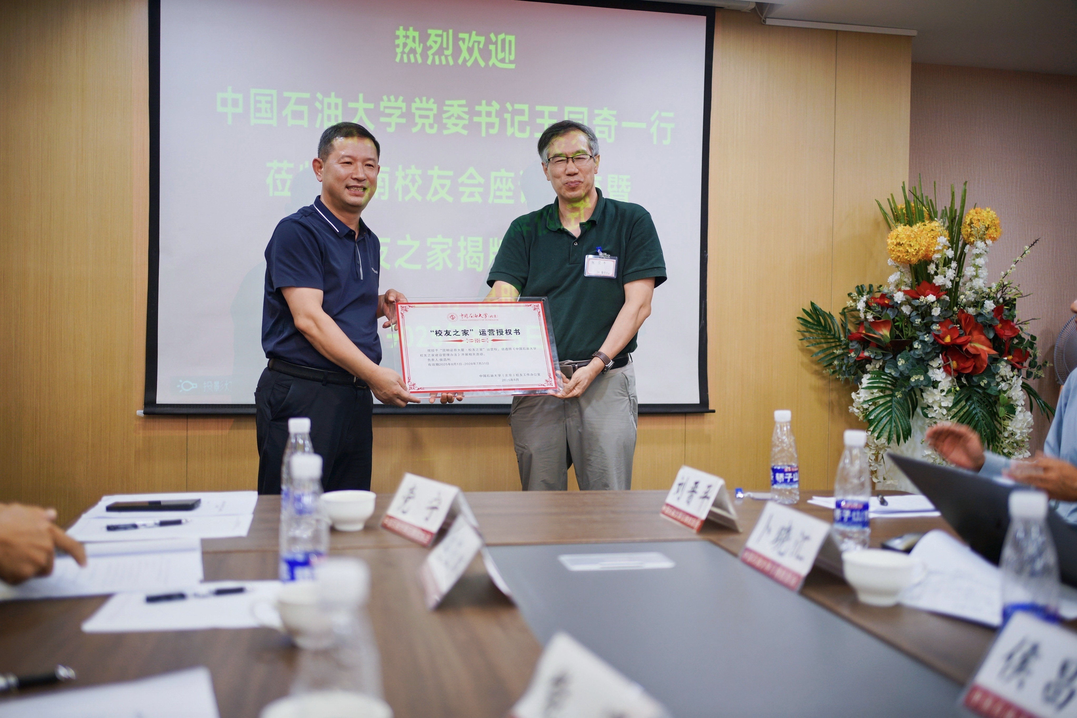 王同奇带队走访云南校友会“校友之家”,与校友会会长陈昆亭、名誉会长许绍德以及部分云南校友代表、新生代表座谈交流。与会代表围绕如何发挥校友会桥梁纽带作用、整合资源助力校友和母校成长发展等内容进行深入探讨。王同奇表示,学校将持续强化校友工作,不断创新工作模式和方法,努力促进校友与母校相互赋能、共同发展。会后,王同奇为云南校友会“校友之家”授牌。