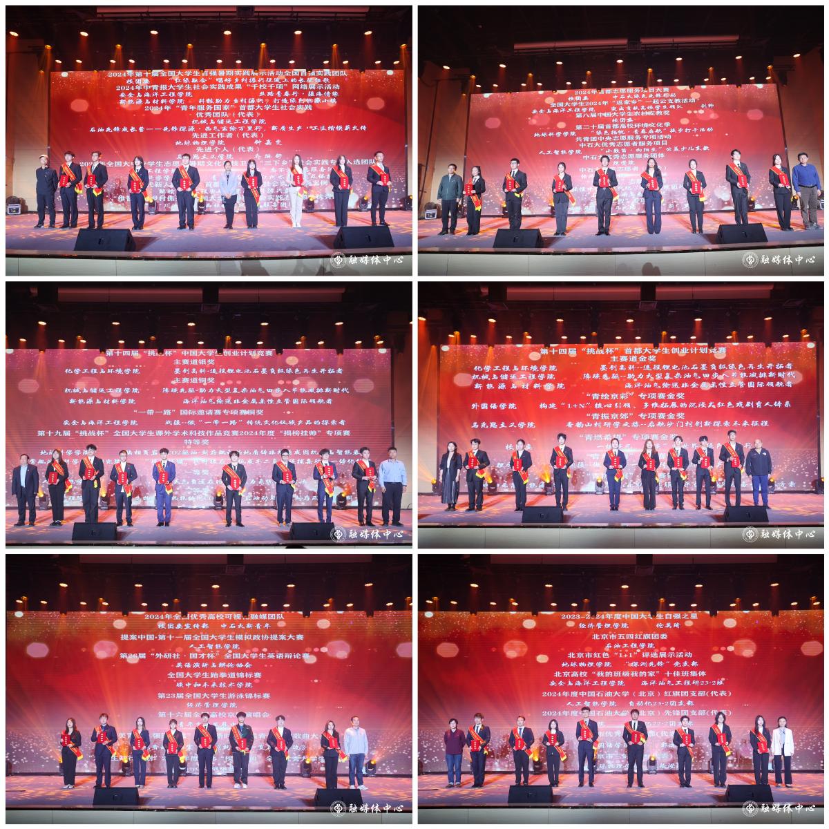 会上总结并表彰了2024年度beat365青年在挑战杯、社会实践、志愿服务等领域取得的成果。颁奖嘉宾为先进集体和优秀个人代表颁发证书,勉励团员青年继承发扬“五四精神”,赓续荣光,接续奋斗。
