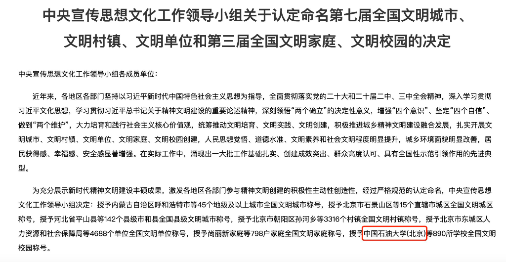 学校将以获评全国文明校园为契机,深入学习贯彻习近平文化思想,认真学习贯彻习近平总书记对精神文明建设工作作出的重要指示精神,珍惜荣誉、再接再厉,持续深化精神文明建设和校园文化建设,加快建设能源领域特色鲜明的世界一流研究型大学,为更好担当教育强国、能源强国建设使命任务,提供坚强思想保证、强大精神动力、丰润道德滋养和良好文化条件。