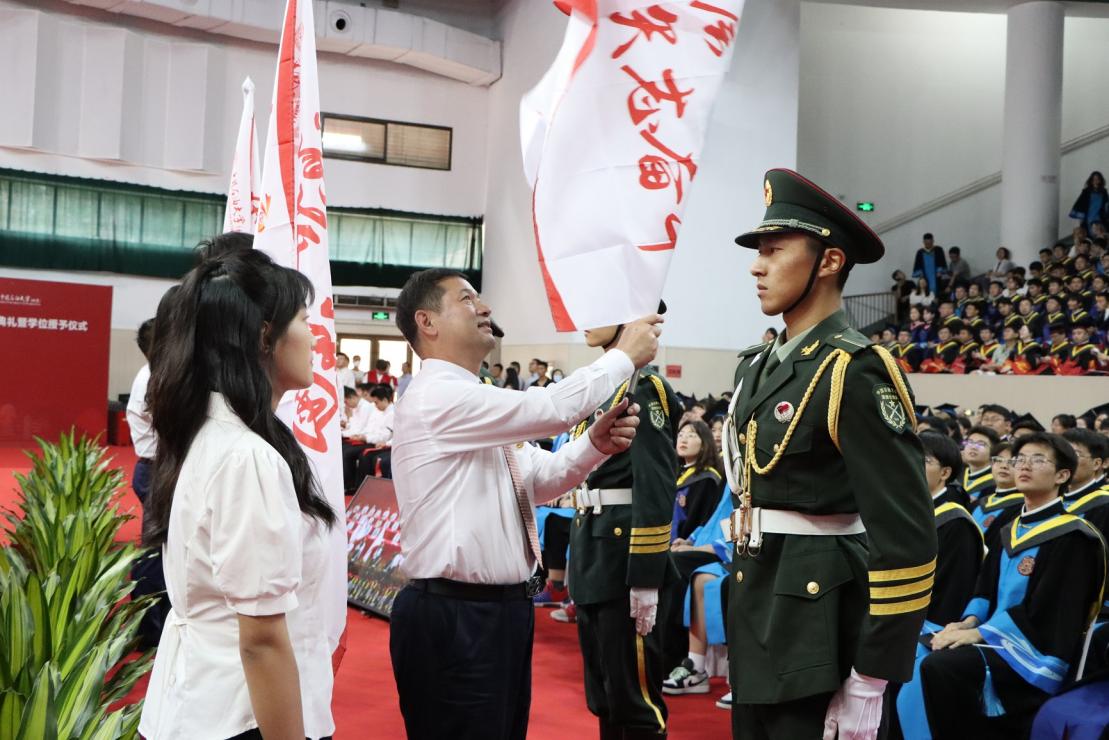 党委书记王同奇为基层就业毕业生代表出征授旗