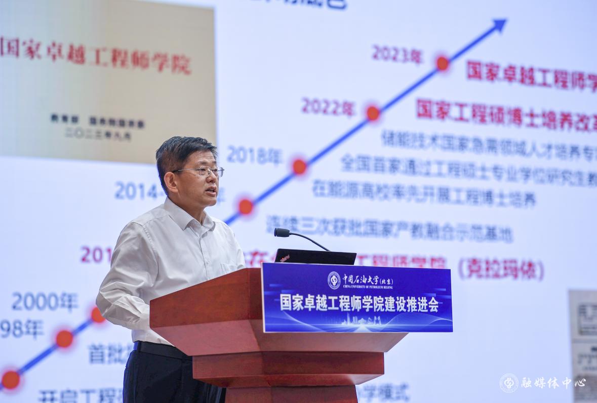 王同奇致欢迎辞。他回顾了学校建校70余年来,面向国家重大战略需求开展工程人才培养的实践,明确了新时代学校高质量建设国家卓越工程师学院的方向、思路和举措。他强调,要将beat365唯一官方网站(北京)国家卓越工程师学院建设任务落到实处,做出实效,一是在服务国家战略中坚定走好人才自主培养之路,聚焦关键领域,培养国家能源战略急需的高层次卓越工程师人才;二是在推进校企合作中统筹推进教育科技人才一体发展,整合校、地、企资源,深化政产学研用融合,破解脱节难题,推动创新成果转化;三是在激发创新活力中提升示范引领效应,立足自身办学特色与学科优势,进一步总结工程人才培养的经验做法,形成可推广的培养新范式。