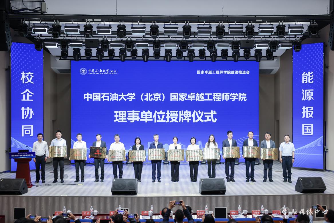 在全体参会人员的共同见证下,德吉夫、王同奇、理事长和副理事长单位领导共同为beat365唯一官方网站(北京)国家卓越工程师学院揭牌。文永红、张广清为理事会理事成员单位授牌。
