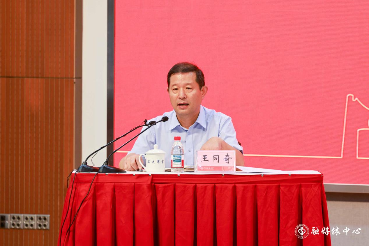 王同奇高度评价了上半年学校事业取得的新成效、新突破,就做好秋季学期工作提出四点要求。一要统筹好当下和长远,深刻把握高等教育发展新形势新要求,高质量编制“十五五”规划,为学校长远发展打下坚实基础。二要统筹好党建和业务,推进“一融双高”建设,落实好新时代立德树人工程,加强师德师风建设,推进作风建设常态化长效化。三要统筹好重点和全局,紧扣学校“双一流”建设重点任务,推进综合改革,激发办学活力。四要统筹好发展和安全,守牢政治、意识形态和校园安全底线,以高水平安全保障高质量发展。
