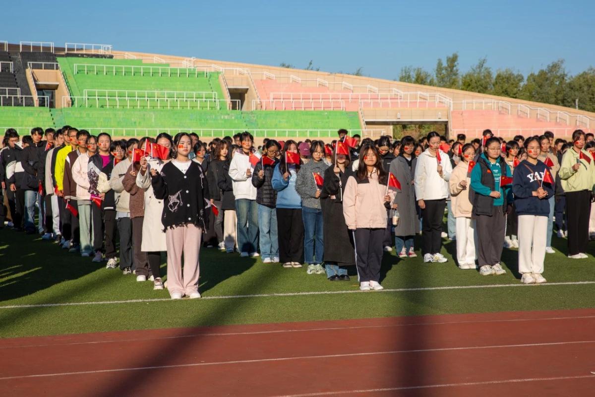 当日清晨,学校在北校门广场举行了隆重的升国旗仪式和国旗下的演讲活动,进一步弘扬爱党爱国精神,引领广大学子树立为祖国为人民永久奋斗、赤诚奉献的坚定理想。全体师生齐声高唱《义勇军进行曲》和《我和我的祖国》,共同表达对伟大祖国的深情热爱和诚挚祝福。