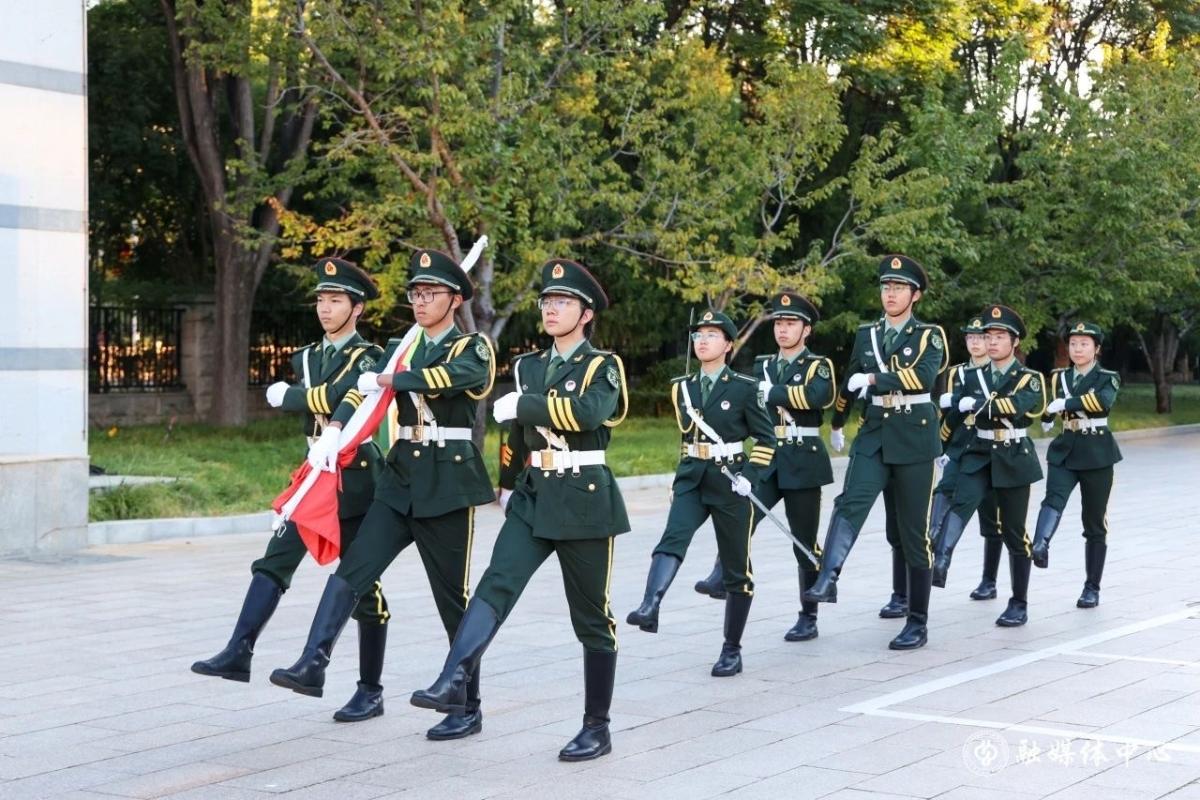 克拉玛依校区也在红旗操场举行了国庆升旗仪式,全体在校新生和辅导员参加活动,高唱雄壮的国歌旋律,诵读爱国诗篇《我的祖国》,活动现场涌动着澎湃的爱国热情。