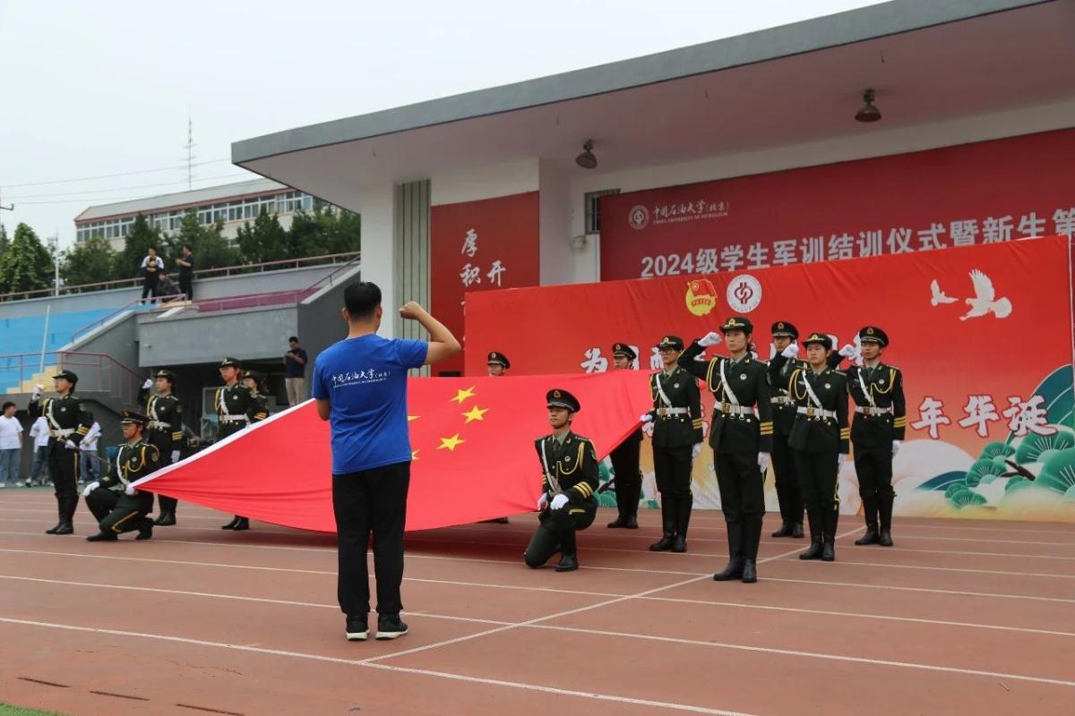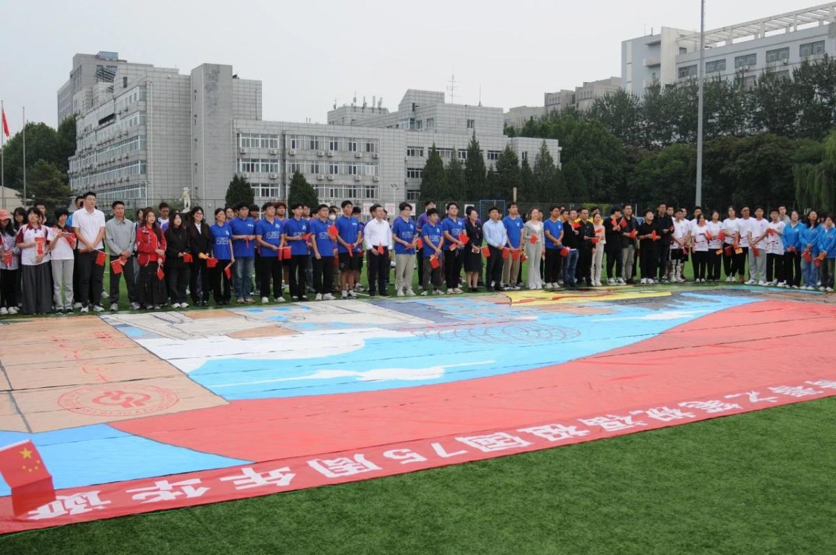 校团委组织200余名青年师生齐聚红旗操场,以青春之笔共同绘就“为国而生 与国同行”巨幅画卷,活动中,beat365建校70周年校庆日在天安门广场升起的五星红旗在学校国旗仪仗队的护送下,首度亮相红旗操场,全场师生面向国旗举起右拳庄严宣誓:不忘初心、牢记使命,自信自强、刚健有为,胸怀国之大者,矢志能源报国,奋力书写为中国式现代化挺膺担当的青春篇章。教育部官微“微言教育”对活动进行了报道。