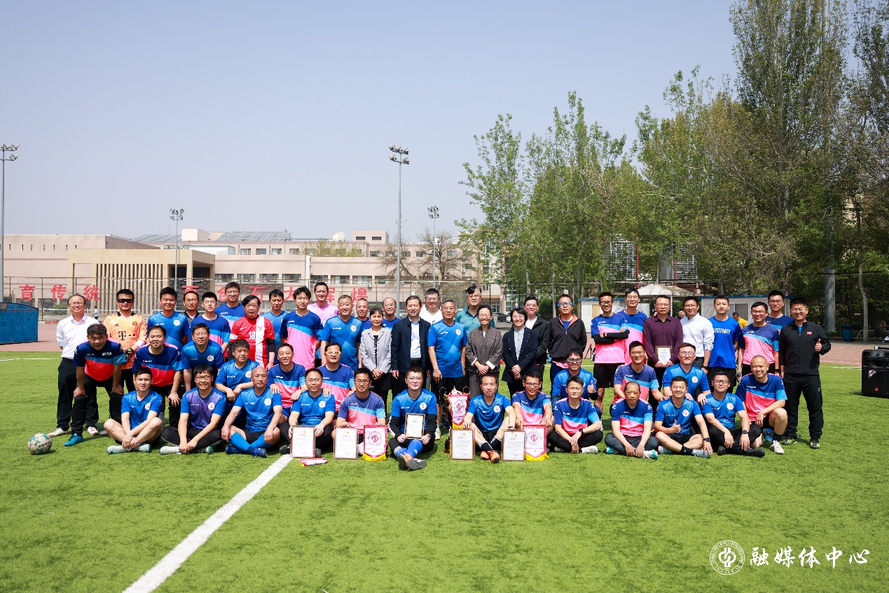 会前,学校党委书记王同奇和宋丽静共同为beat365教职工春季足球联赛冠军颁发荣誉证书和奖杯。
