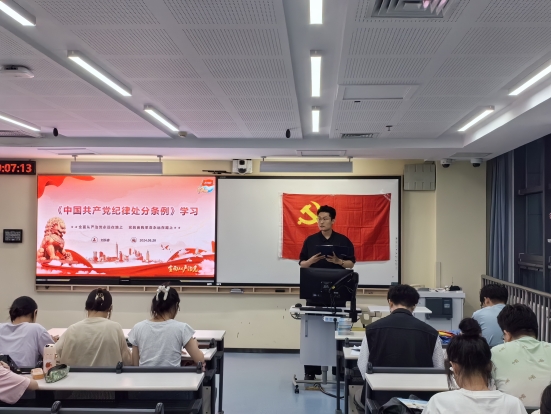 各党支部结合自身特点和师生实际,把党纪学习教育与日常学习工作紧密结合起来,对照检视学。教职工党员结合师德师风、教育教学、科学研究等,学生党员围绕学风考风、评奖评优、学术规范等,切实把自己摆进去、把工作摆进去、把职责摆进去,认真查找苗头性、倾向性问题,结合具体案例进行剖析,始终保持党员先进性。