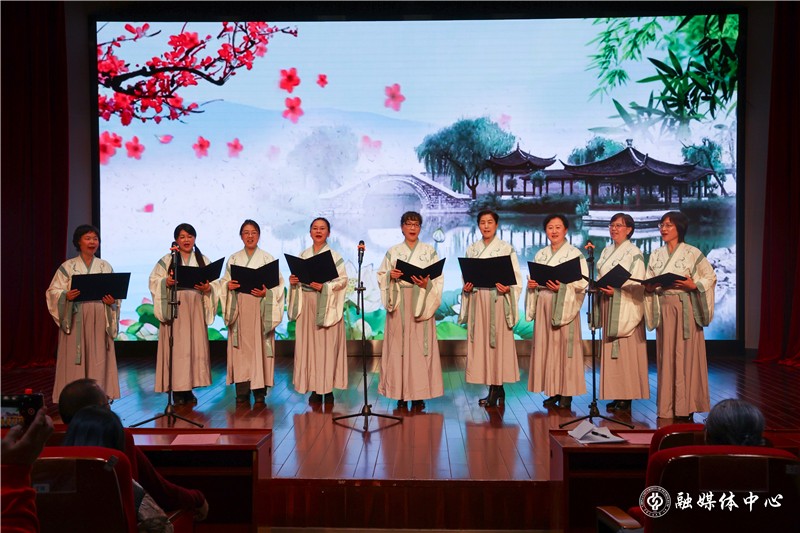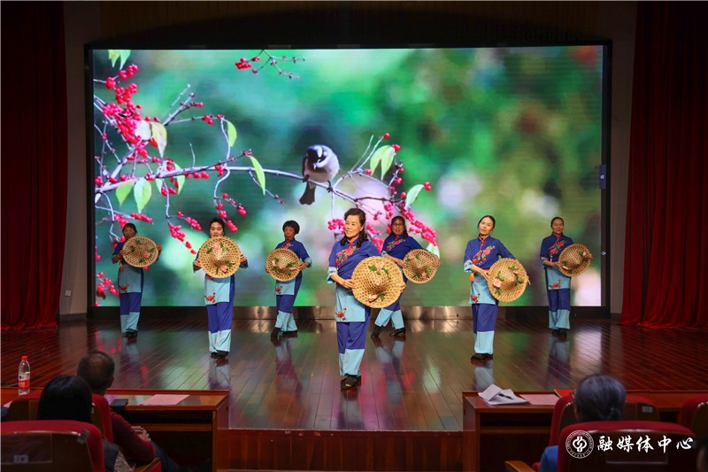 事业发展通报会后,离退休教职工们自编自演了舞蹈、陶笛五重奏、书画作品展示、古诗词唱诵、口琴齐奏、广场舞、太极拳、女声小合唱以及模特秀等多个节目,充分展现了离退休教职工积极向上的生活态度和丰富多彩的退休生活。