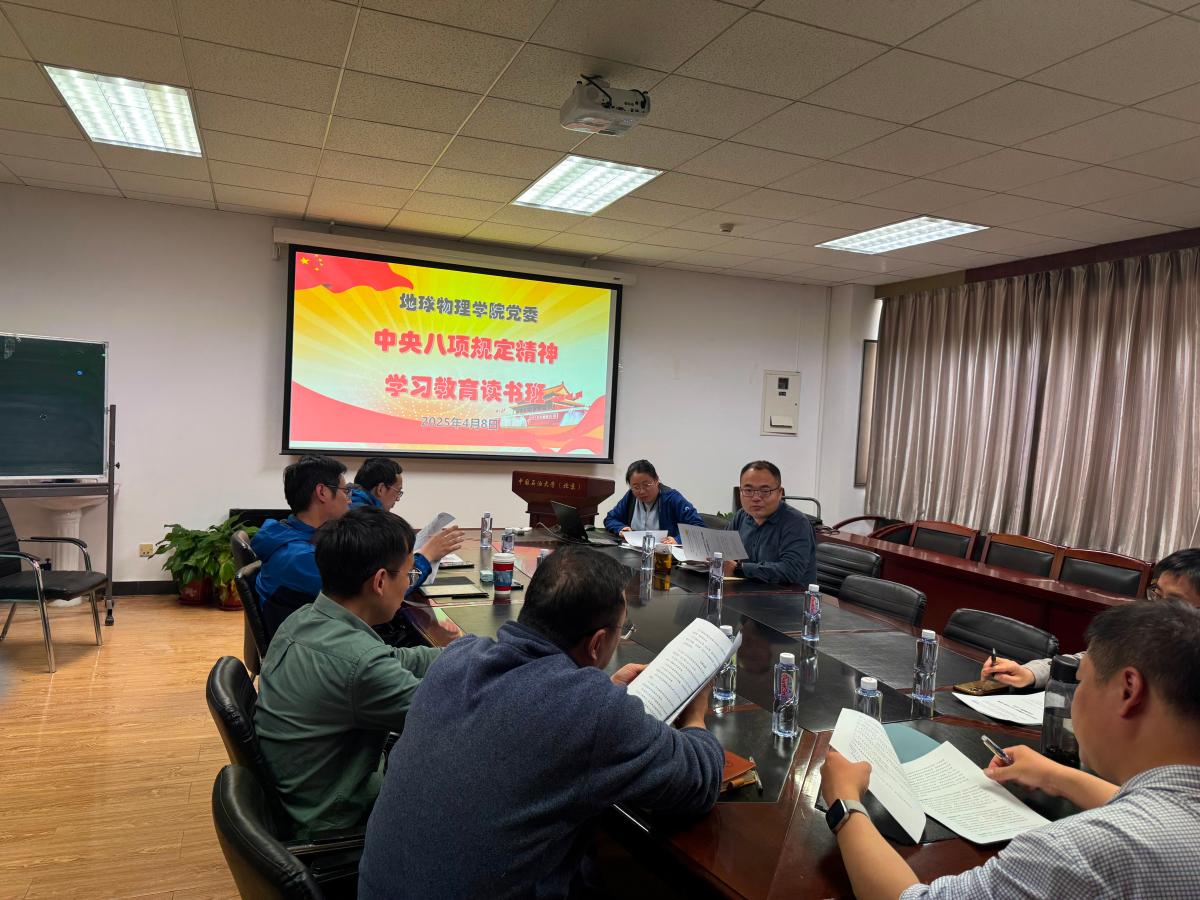 精心部署,分层推进学习教育。学校召开深入贯彻中央八项规定精神学习教育启动部署会后,地球物理学院党委第一时间召开专题会议,研究制定学习方案,明确任务分工。学院领导班子成员和各教师党支部书记率先垂范,通过“中央八项规定精神学习教育读书班”开展集中学习,并号召全体师生党员结合工作实际进行自学。截至目前,学院召开三次党委会扩大会、两次支部书记例会、一次中心组学习,构建了"领导班子领学促学、基层组织联学践学、党员干部深学实学"的多层次推进格局。各党支部积极响应,组织党员开展集中理论学习,确保中央八项规定精神入脑入心。