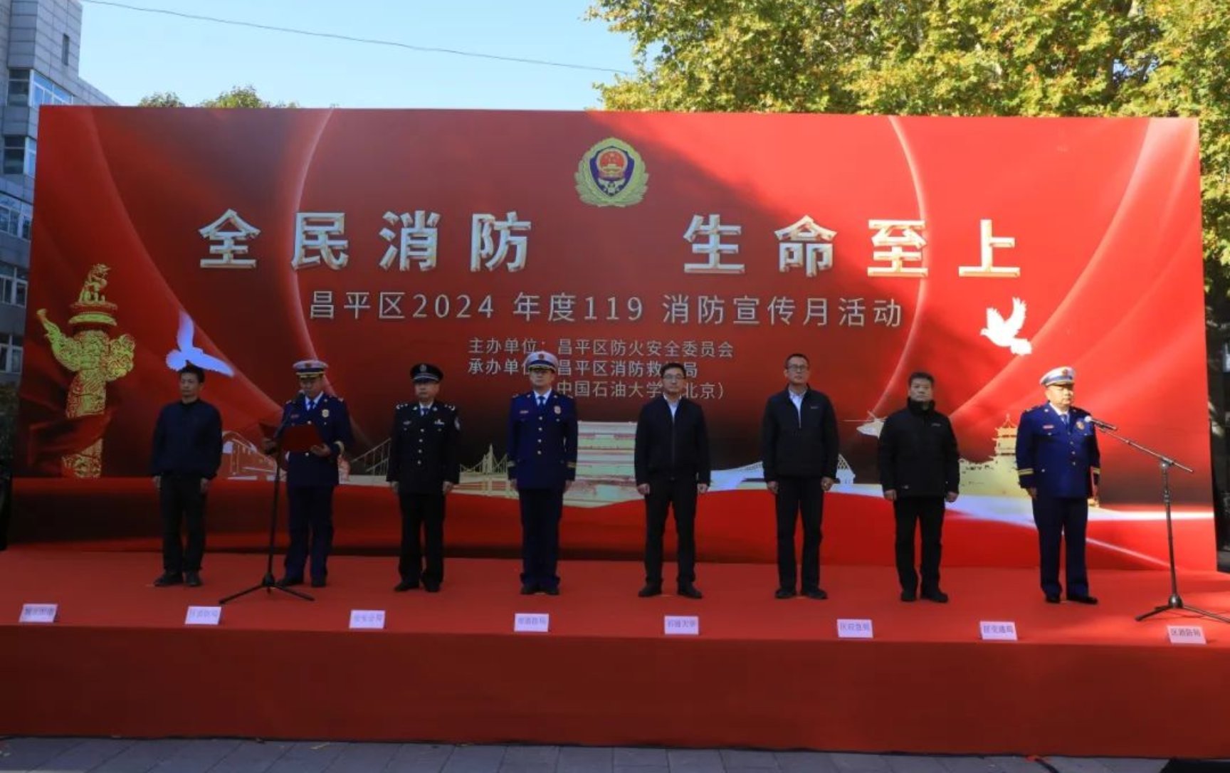 强化校地联动,共筑校园安全“防火墙”。11月6日,由学校承办的2024年度昌平区“119”消防宣传月启动仪式在南广场举行,吸引了400余名社会各界及师生代表参与。活动现场设有电动自行车火灾快速扑救试验、消防车辆装备展示、消防剪纸等消防主题文化活动,同时,学校结合自身特色,设置了VR体验、电子灭火器灭火、模拟烟雾逃生、结绳体验、心肺复苏等5个特色主题展区,让师生在互动体验中深刻认识消防、关注消防、参与消防。