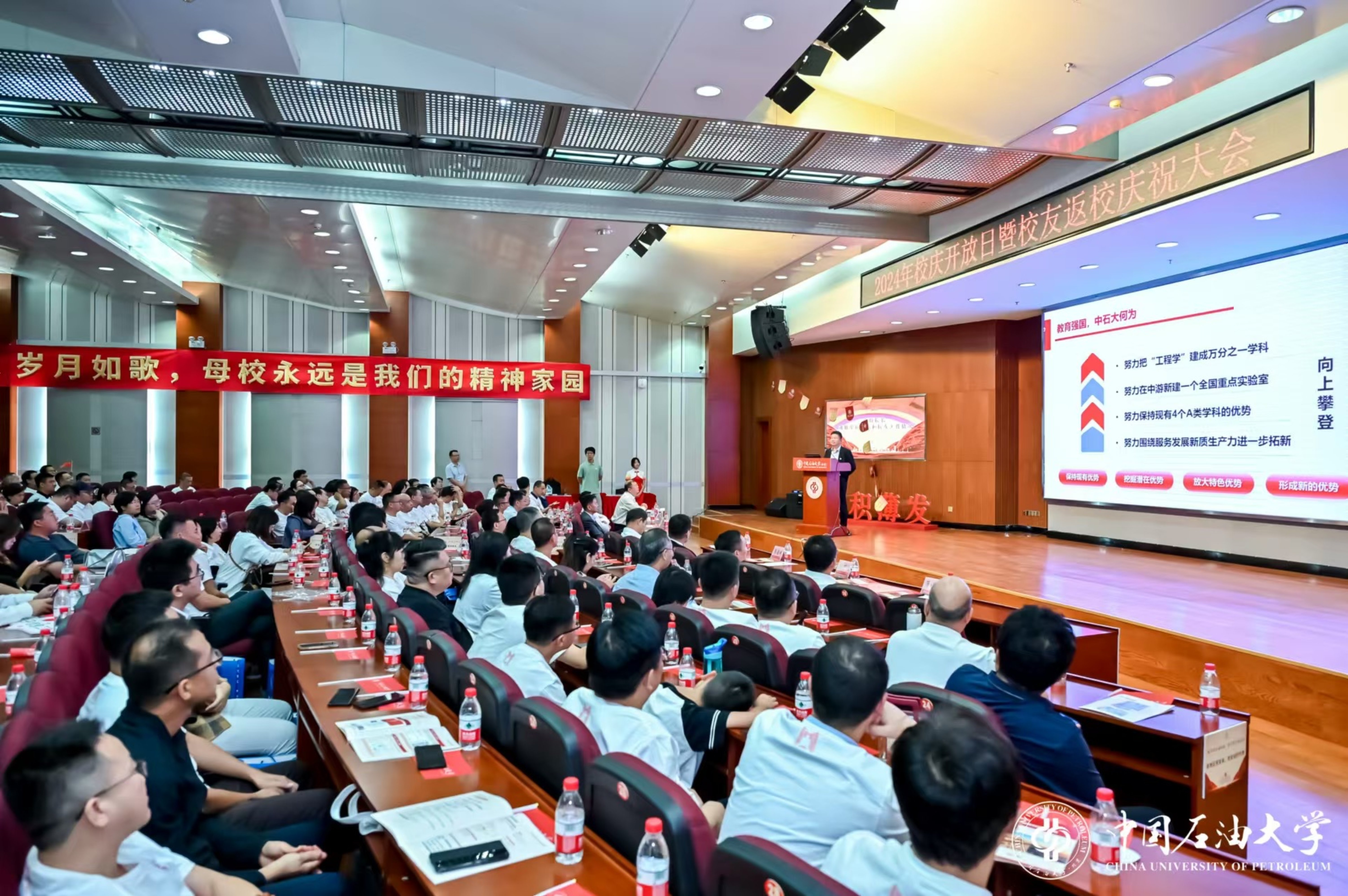 地质工程1994届校友门相勇、石油工程1994届校友王京博、机械工程1994届校友王大伟、地质工程2004届校友江青春、化学工程2004届校友公磊、机械工程2004届校友郭涛、电子信息2004届校友张玮、国际贸易2004届校友李世群、英语2004届校友石娟,分别代表毕业30周年、20周年的校友上台发言。他们回顾了在母校求学生活的时光,感恩母校和老师对自己的关爱和培养,为母校近年来取得的办学成就感到自豪。他们表示,将会始终传承发扬母校“实事求是、艰苦奋斗”的优良传统,在各自岗位为强国建设和民族复兴贡献力量,并祝愿母校宏图更展、再谱华章,早日建成能源领域特色鲜明的世界一流研究型大学。