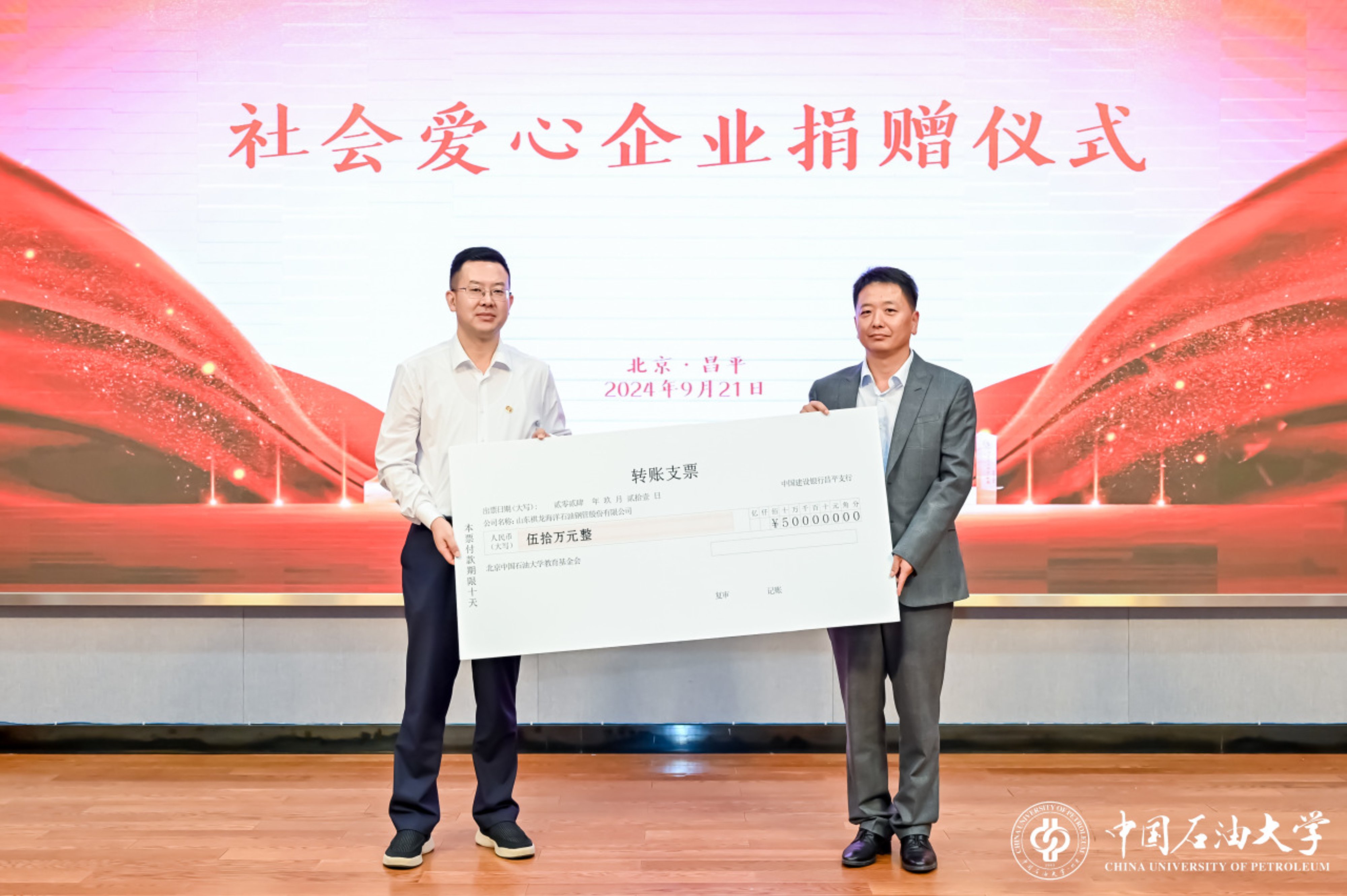 会上,北京德美高科科技股份有限公司董事长张德斌、山东祺龙海洋石油钢管股份有限公司总经理孟庆滨分别代表两家爱心企业,为学校捐赠100万元、50万元。文永红代表北京beat365唯一官方网站教育基金会接受捐赠并颁发捐赠证书。
