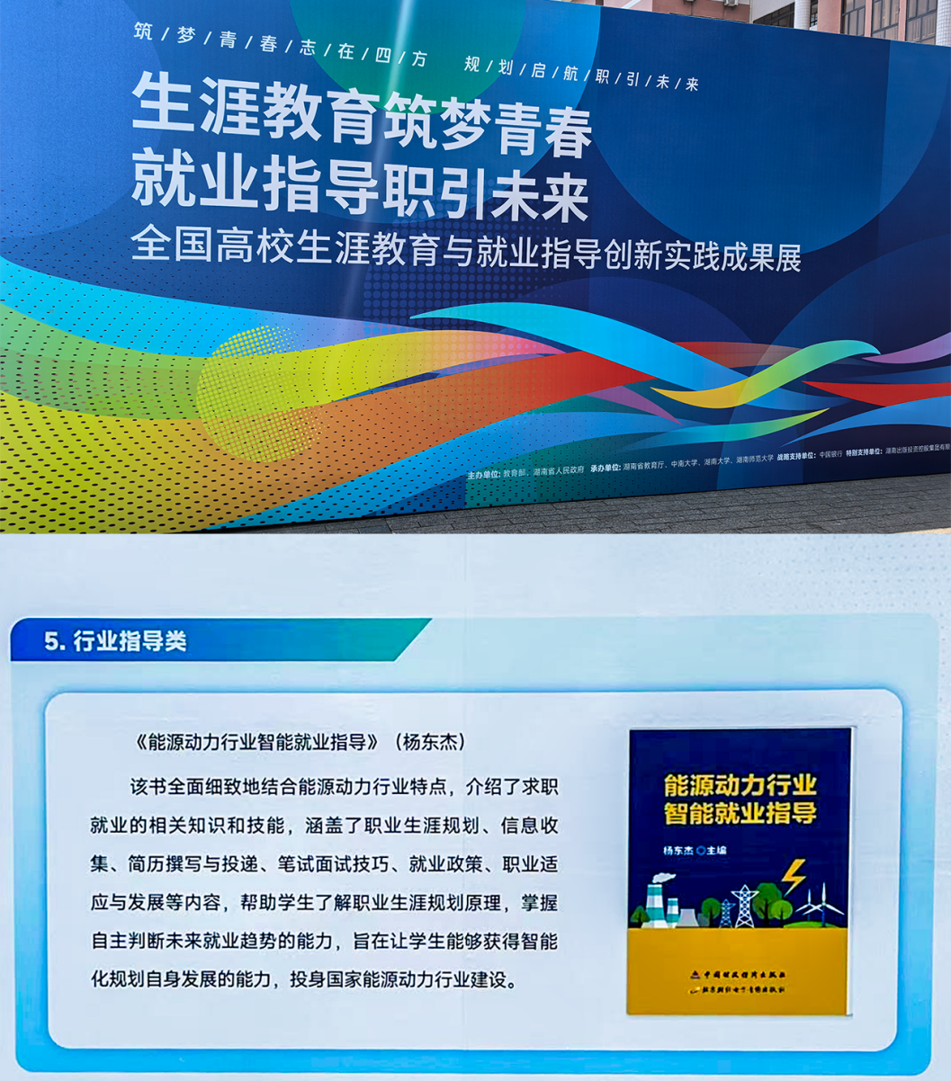 大赛同期举办全国高校生涯教育与就业指导创新实践成果展,旨在展示各地各校在就业指导领域的政策成效、典型模式和创新案例。学校就业指导课程数字教材《能源动力行业智能就业指导》入选展览,体现了学校在就业指导课程数智化创新探索方面的先进经验。