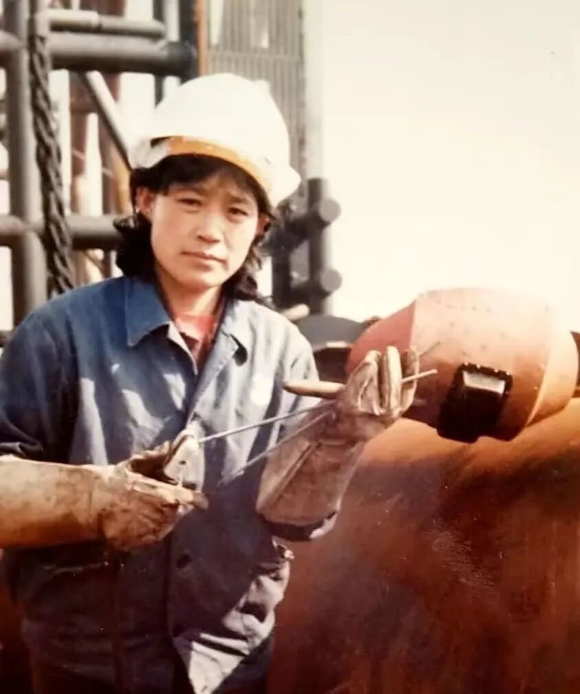 回国后,刘桂芝还把焊接技术教给更多的工人,获得了全国劳动模范、全国“三八”红旗手等一系列荣誉称号。让她印象最深的一件事是首套国产导管架施工完毕进入验收阶段时,检查人员发现一张片子不合格。若重新搭支撑保护架会耽误时间,影响关键工期节点,只能高空返修,即用吊车吊篮把人吊到40米高空作业。刘桂芝主动请战承担抢修任务,即使工作服被焊花引燃,她仍沉着冷静,稳稳地手握焊枪专注作业。24小时后复检合格,工程保住了工期。