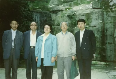 1993年3月,高德利陪同刘希圣教授(左二)、郎兆新教授(右二)、陈钦雷教授(左一)、张丽华教授(左三)赴南海调研合影