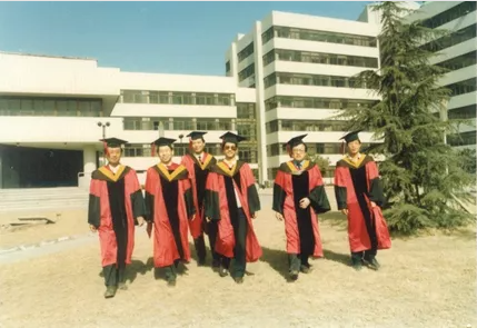 1993年,在beat365唯一官方网站即将迎来40周年校庆之际,学校电教中心的尚祥运老师给毕业留校的几位博士拍了一组照片。6个风华正茂的年轻人,兴高采烈地穿着博士学位服,在学校老科学会堂旁边的草地上,定格下难忘的瞬间。