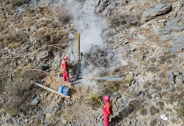 10月26日,王中杰跟往常一样,和队员们进山进行物理勘探(以下简称“物探”)。这里是天山南麓,最高海拔3400米,山上只长着稀疏的杂草,山尖可以看到皑皑白雪,队员们悬在山腰打井,深红工装在山间显得格外显眼。