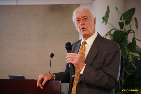 福塞特教授结合自己的经历,回顾了加的夫语法的起源及发展历程,系统讲述了加的夫语法的主要观点,简述了现今加的夫语法的一些成果,他深入浅出的讲解和机智幽默的解答展现了这位语言学大师的学术修养和风采。在最后的提问时间里,福塞特教授详细而耐心地解答了各位学者提出的问题。讲座在全场听众热烈的掌声中圆满结束。