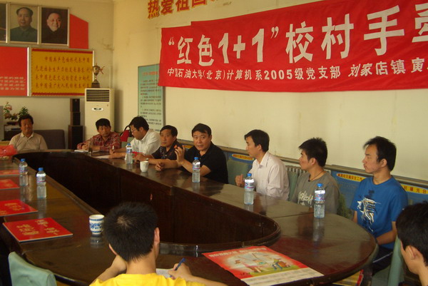 本次活动得到了刘家店镇政府和寅洞村村委会的大力支持,刘家店镇党委副书记张振江、村党支部书记邢术然、主任邢术贺出席了活动,镇团委书记张大军主持了活动。两个支部首先就如何建设社主义新农村,如何充分发挥党支部职能,奥运会为新农村带来的机遇与挑战,以及抗震救灾等各方面问题进行了座谈。随后,计算机系2005级本科生党支部向刘家店镇寅洞村党支部赠送科技图书一套,并慰问了寅洞村的五户低保户,向低保户发放了慰问品。活动中,同学们还来到农间地头参观农民劳动的过程,并亲手体验为大桃套袋的工作。