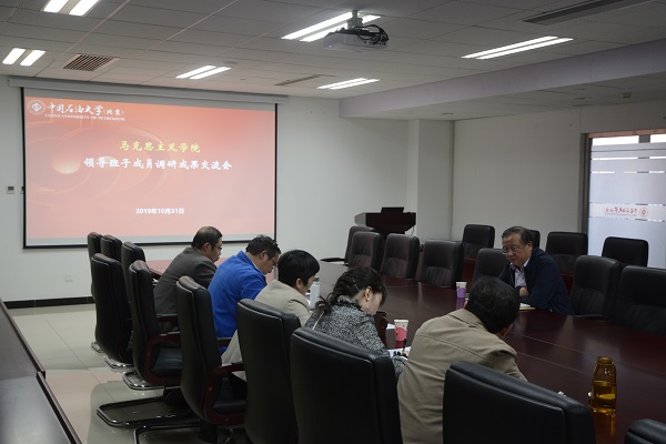 根据《beat365唯一官方网站(北京)“不忘初心、牢记使命”主题教育工作方案》要求,石大马克思主义学院领导班子围绕贯彻“守初心、担使命,找差距、抓落实”的总要求,紧密结合学院工作实际有序开展调研,把调查研究结果充分运用于学院工作各环节,大力推进主题教育见实效。10月31日下午,马克思主义学院召开“不忘初心、牢记使命”主题教育领导班子调研成果交流会。学校党委副书记雷玉江和学院领导班子全体成员参加会议,会议由学院党总支书记刘韵秋主持。
