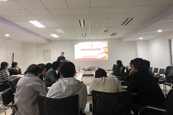学院党委书记蒲俊霖以“加强党对学院工作的领导”为题,详细分析了学院党建工作存在的突出问题,讲述了高水平学院应具备的基本要素以及新能源与材料学院未来10年的发展目标,并按照问题导向提出了具体措施。一是强化政治建设,定方向抓引领、定任务抓落实、定规矩抓程序;二是优化党支部设置,拓展党支部工作抓手,提升党支部育人功能;三是加强学院干部队伍建设,提高执行力;四是着力建设学院文化,提升学院凝聚力。他说,全体教师要始终不忘初心、牢记使命,回答好“培养什么人”的问题;要坚持立德树人、加强思政工作,回答好“怎样培养人”的问题;要增强“四个意识”、坚定“四个自信”,回答好“为谁培养人”的问题,为培养时代新人作出应有贡献。