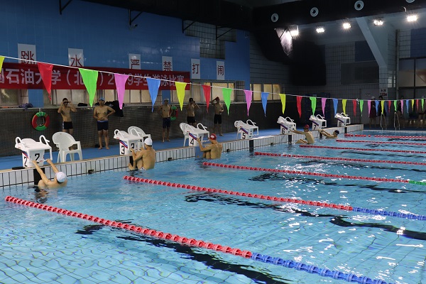学生游泳比赛是学校特色传统赛事,吸引了众多师生关注。本次比赛除了自由泳、蛙泳、仰泳、蝶泳、自由泳腿、蛙泳腿等常规项目外,还增设了水中竞走、50米双人抱球接力两个趣味比赛项目。