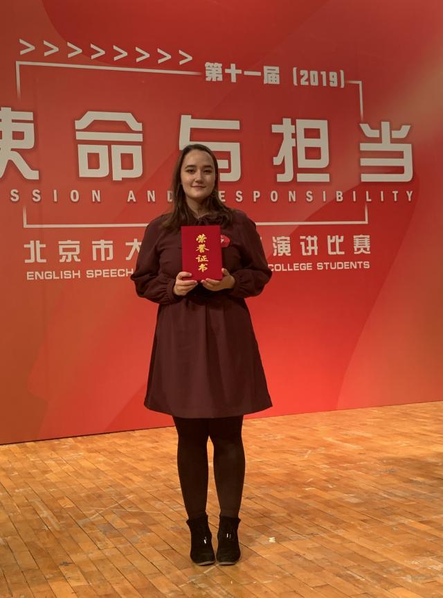 11月30日,第十一届北京市大学生英语演讲比赛在对外经济贸易大学举办,beat365外国语学院学生陈阿丽娜以总分排名第六的成绩获比赛二等奖。