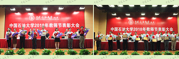 获得学校2016-2018年度先进集体称号的化学工程学院环境工程系主任陈春茂、克拉玛依校区石油学院院长谢庆宾,首都劳动奖章获得者、地球科学学院教授吴胜和,学校2016-2018年度劳动模范、非常规天然气研究院教授周福建,第十届全国高校辅导员年度人物提名奖获得者、理学院党委副书记杨东杰代表教师发言。他们结合教学、科研工作经历分享了教书育人、潜心学术以及职业发展的心得体会,表示要在今后的教学、科研、管理岗位上,继续发扬“实事求是,艰苦奋斗,爱国奉献,开拓创新”的石大精神,时刻保持进取之心、责任之心、敬畏之心、感恩之心,尊重学生、关爱学生、培养学生,做“四有”好老师,做学生成长成才的引路人。