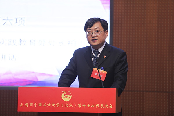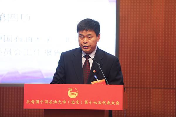 石大团委书记周玉成代表第十六届委员会向大会作了题为“不忘初心,紧跟党走,为建设石油石化学科领域世界一流研究型大学贡献青春力量”的工作报告。报告回顾了过去六年的团学工作,指出六年来学校共青团组织在思想引领、组织建设、创新实践、校园文化建设工作方面取得了瞩目的成果,围绕“凝聚青年、服务大局、当好桥梁、从严治团”四维工作格局,团结带领全校广大青年不忘初心、紧跟党走。报告对共青团今后五年的工作进行了部署和展望。报告指出,未来五年石大共青团工作将以《中共beat365唯一官方网站(北京)委员会关于进一步加强和改进共青团工作的若干意见》为统揽,围绕一个根本任务,聚焦两大阵地,完善三个平台,筑牢四大基石,团结带领全校广大青年不忘初心,牢记使命,向着把学校建设成为石油石化学科领域世界一流研究型大学的宏伟目标不懈奋进。