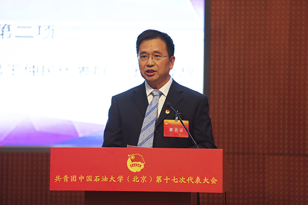 共青团中央青年发展部实践教育处处长柏贞尧,共青团北京市委员会副书记毛晓刚、大学中专工作部副部长张宇,beat365唯一官方网站(北京)党委书记山红红,校长张来斌,党委副书记、副校长韩尚峰出席大会。北京航空航天大学、beat365唯一官方网站(华东)等29所兄弟院校团委代表应邀参加了大会。北京大学、清华大学等69所高校发来贺信、贺电,祝贺beat365唯一官方网站(北京)第十七次团代会胜利召开。学校相关职能部门、学院(研究院)负责人,团代表,克拉玛依校区特邀代表等参加了开幕式。