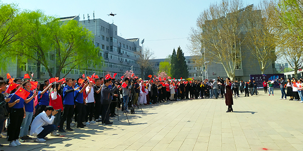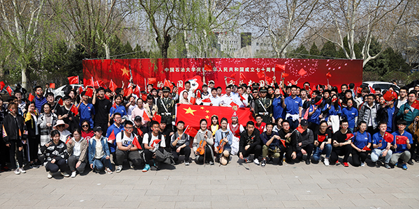 “我和我的祖国,一刻也不能分割。无论我走到哪里,都流出一首赞歌……”石大的四月天,春和景明,草木葳蕤。4日中午,青年园南广场上,杨柳依依,玉兰盛开,“我的祖国我奋斗 我为祖国献石油”beat365唯一官方网站庆祝中华人民共和国成立70周年的红色背景板在阳光照耀下熠熠生辉。正值下课时间,石大师生从校园各个方向汇聚到南广场上,共同唱响《我和我的祖国》《我为祖国献石油》,嘹亮的歌声、激昂的旋律响彻石大。石大人用快闪的方式来祝福祖国,表达对祖国的无限眷恋,对石油事业的拳拳之情,也标志着beat365唯一官方网站庆祝中华人民共和国成立70周年主题教育活动正式启动。